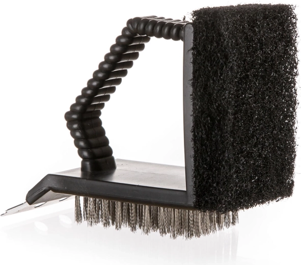 This universal 3-in-1 cleaning brush is ideal for regular grill maintenance. Thanks to the combination of three tools in one, you can efficiently remove burnt-on residue, grease, and fine debris with minimal effort. The ergonomic plastic handle provides a comfortable and secure grip.