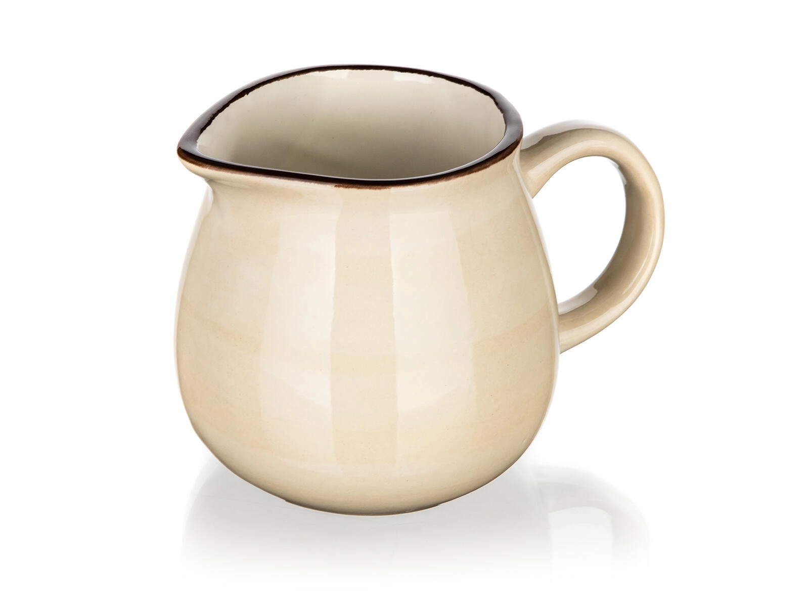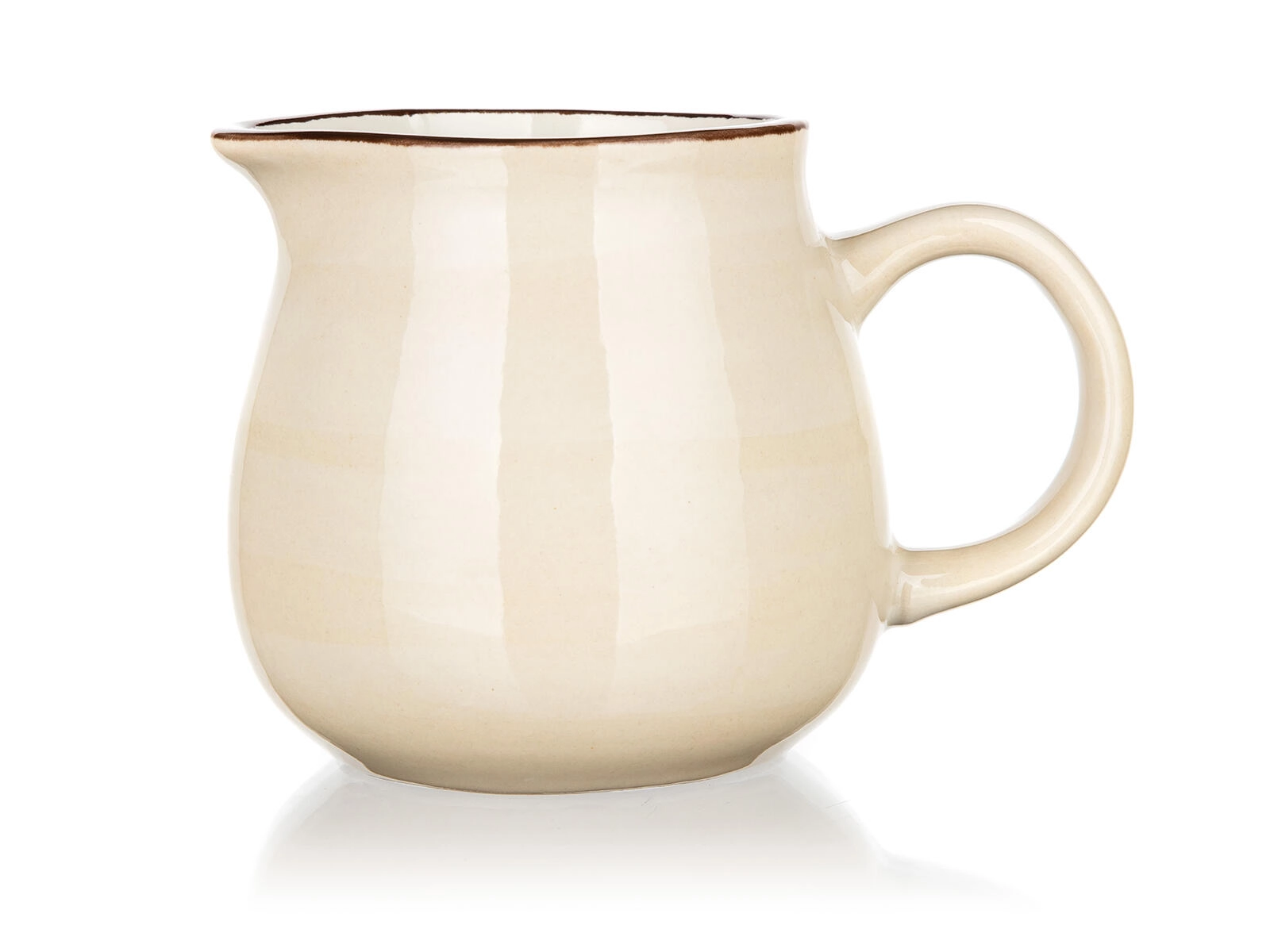 This stylish 350 ml ceramic milk jug in a cream finish will become a reliable helper for serving milk, cream, or sauces. The high-quality glazed surface is stain-resistant and easy to maintain, while the darker rim adds an elegant touch.