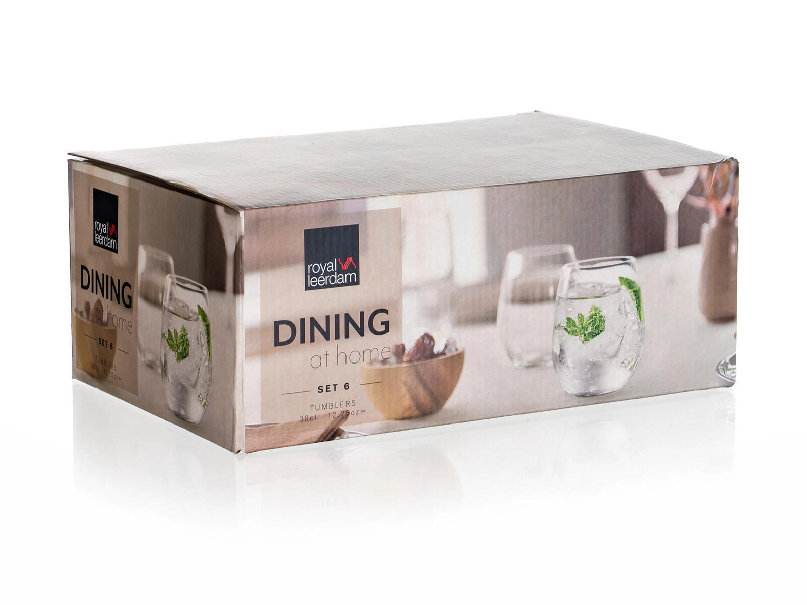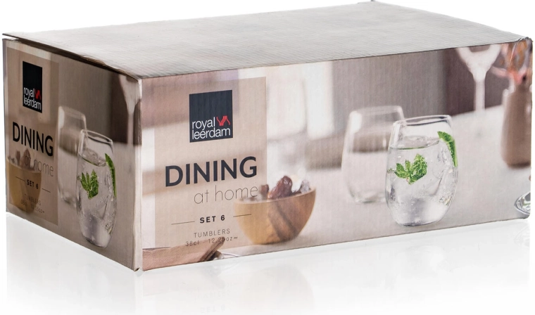 Enjoy your favorite drinks with ROYAL LEERDAM Dining glasses. Thanks to the universal 380 ml capacity and low, well‑balanced shape, they are perfect for water, lemonades, juices, and mixed drinks. Crystal‑clear glass lets the colors of your beverage stand out and gives your table a modern, timeless look.