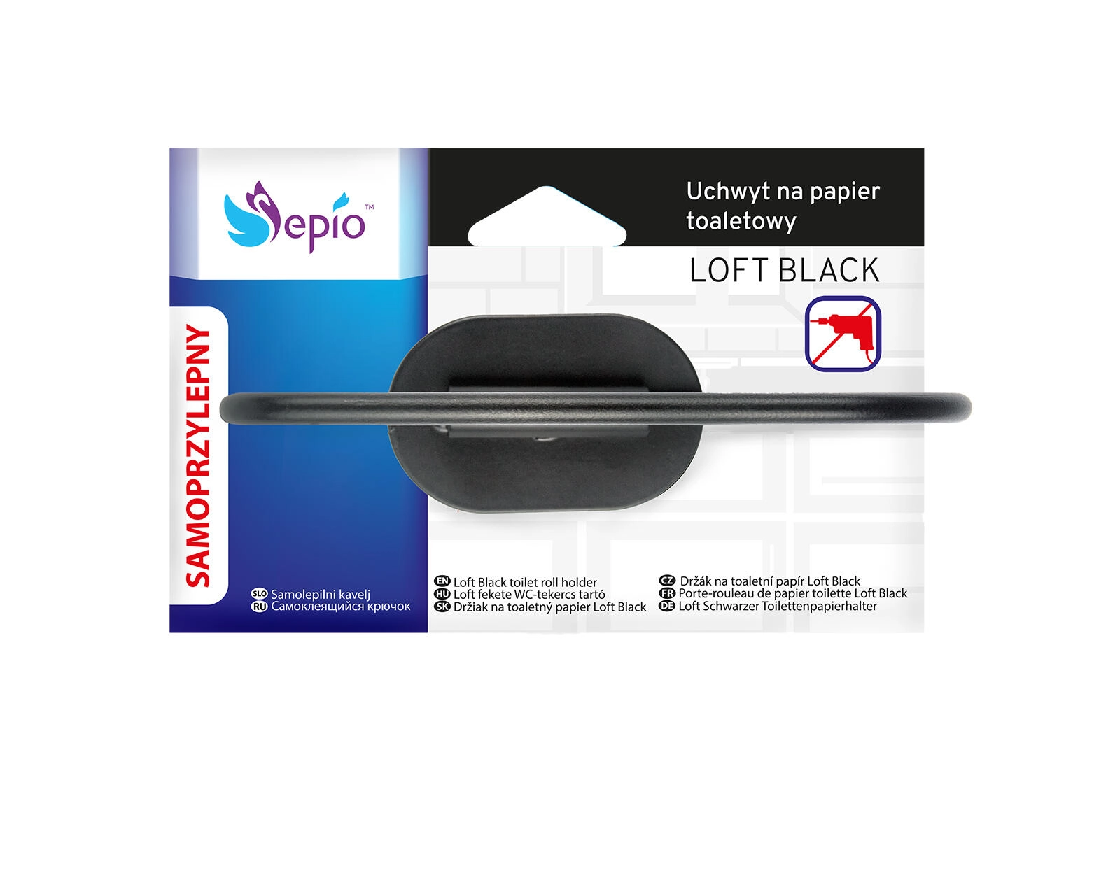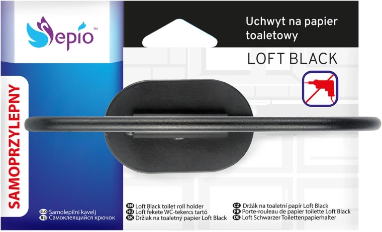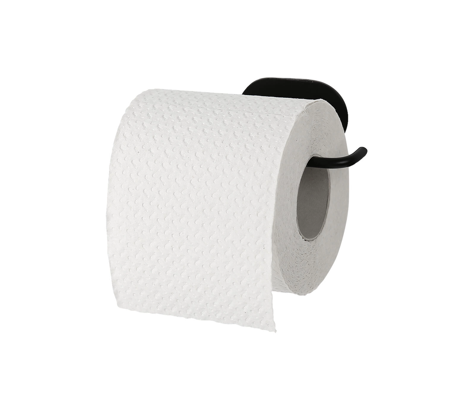 A practical and stylish toilet paper holder in elegant black, made of durable metal. Its compact dimensions save space and its sturdy construction offers long service life, modern design, and easy maintenance.
