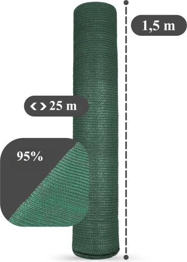This durable green shade net is ideal for fencing gardens, yards, construction sites, and sports facilities. With 95% shading, it significantly reduces visibility through the fence, protects against wind and direct sun, while still allowing airflow. The densely woven, UV-stabilized structure ensures long service life and color fastness even with all-season outdoor use.