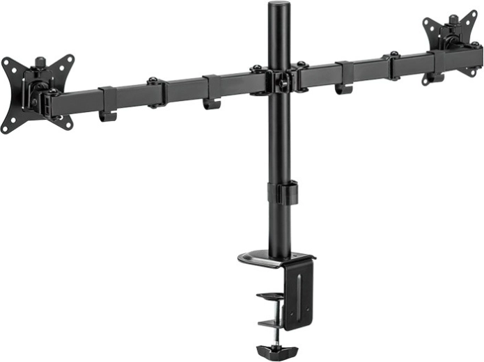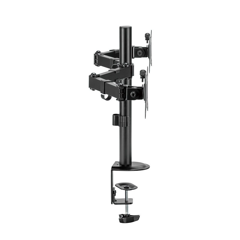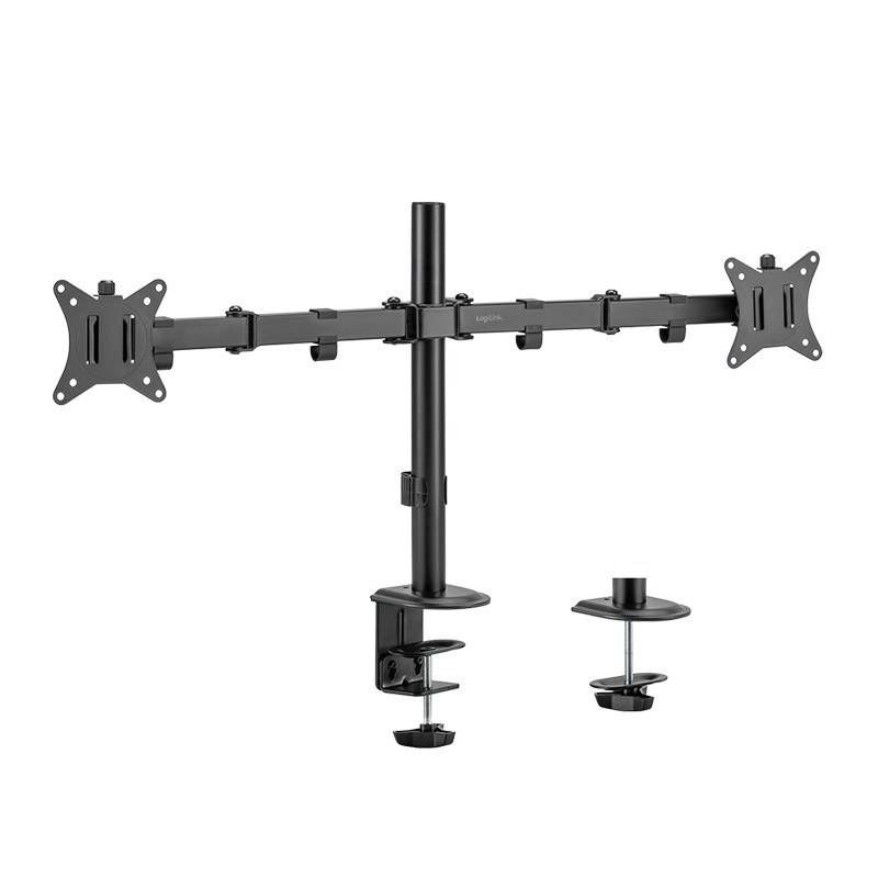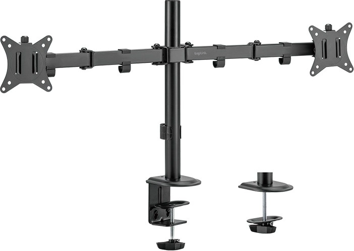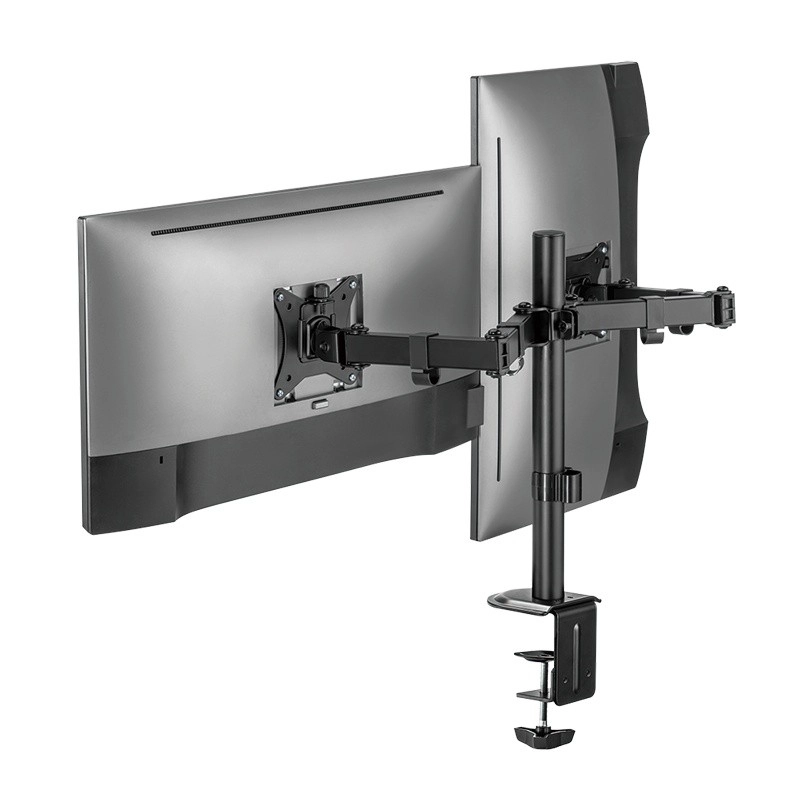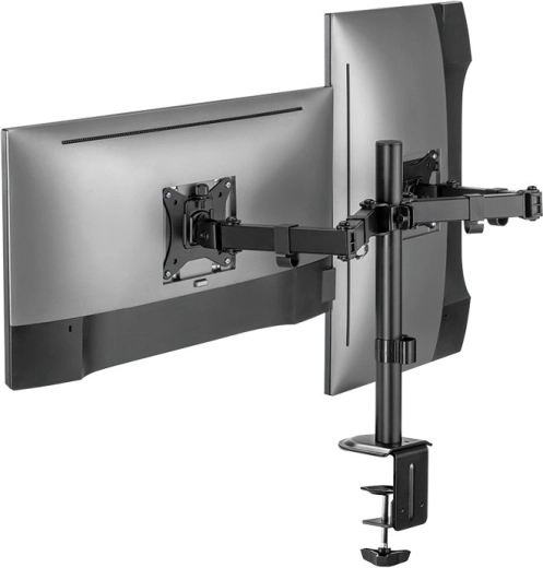 Free up desk space and create an ergonomic workspace with this universal dual monitor mount for 17–32" screens. It offers smooth height adjustment, tilt, swivel and rotation to portrait/landscape, so you can easily set the ideal screen position. The robust design with a load capacity of 2×9 kg and desk clamp mounting ensures stable and secure attachment.