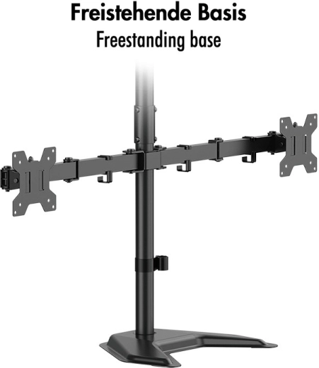 A solid V-shaped base and tall center pole ensure rigidity without drilling into the desk. Ideal for offices and home setups.