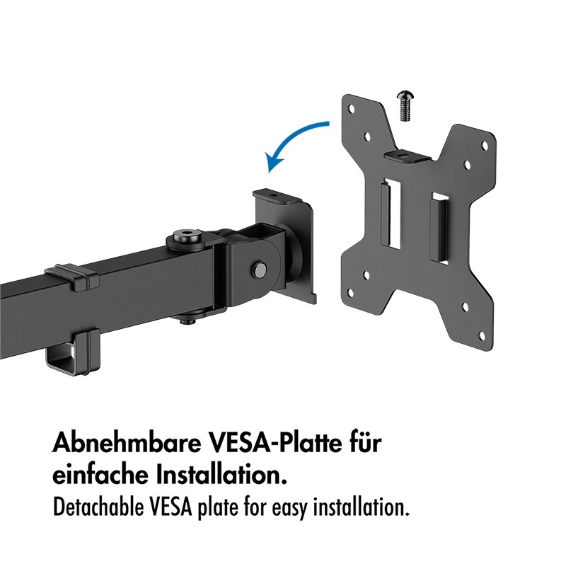 The wide arm with VESA mounts lets you place three screens side by side and a fourth above them. Perfect for multitasking and a clear workflow.