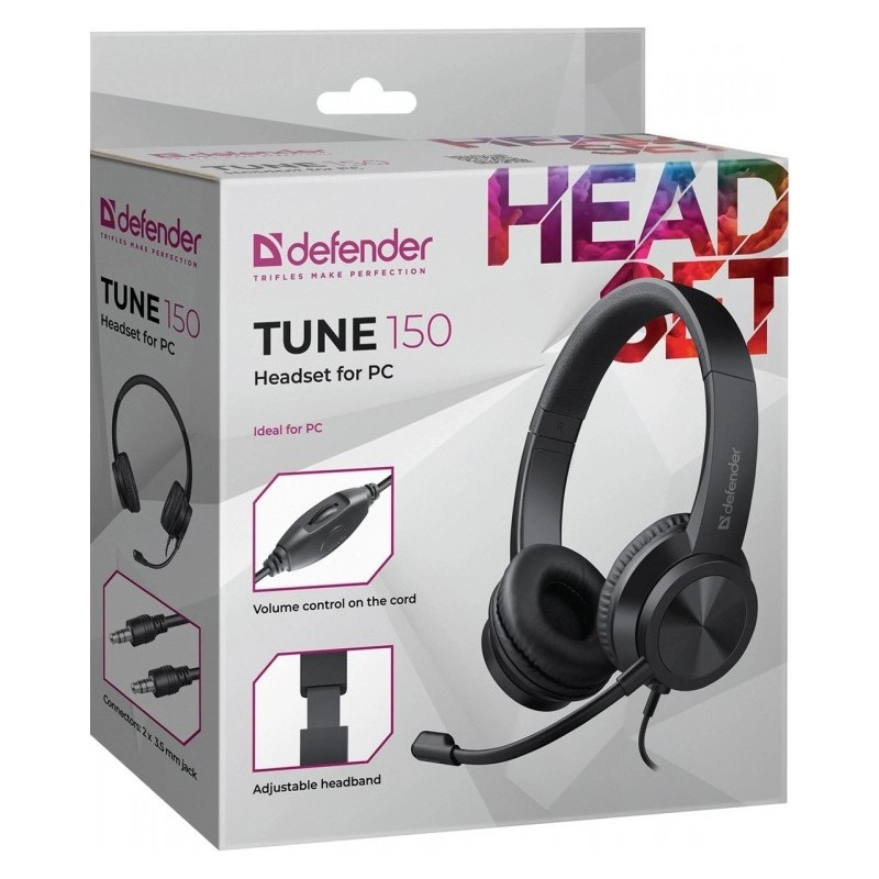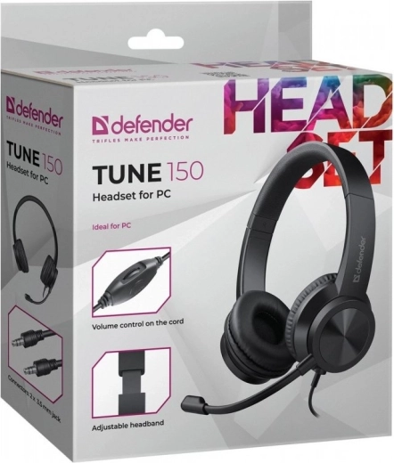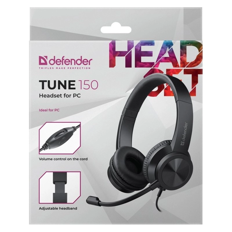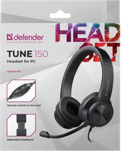 The lightweight computer headset with microphone Tune 150 offers comfortable wear, an adjustable headband, soft ear cushions, and convenient volume control for everyday communication and work.