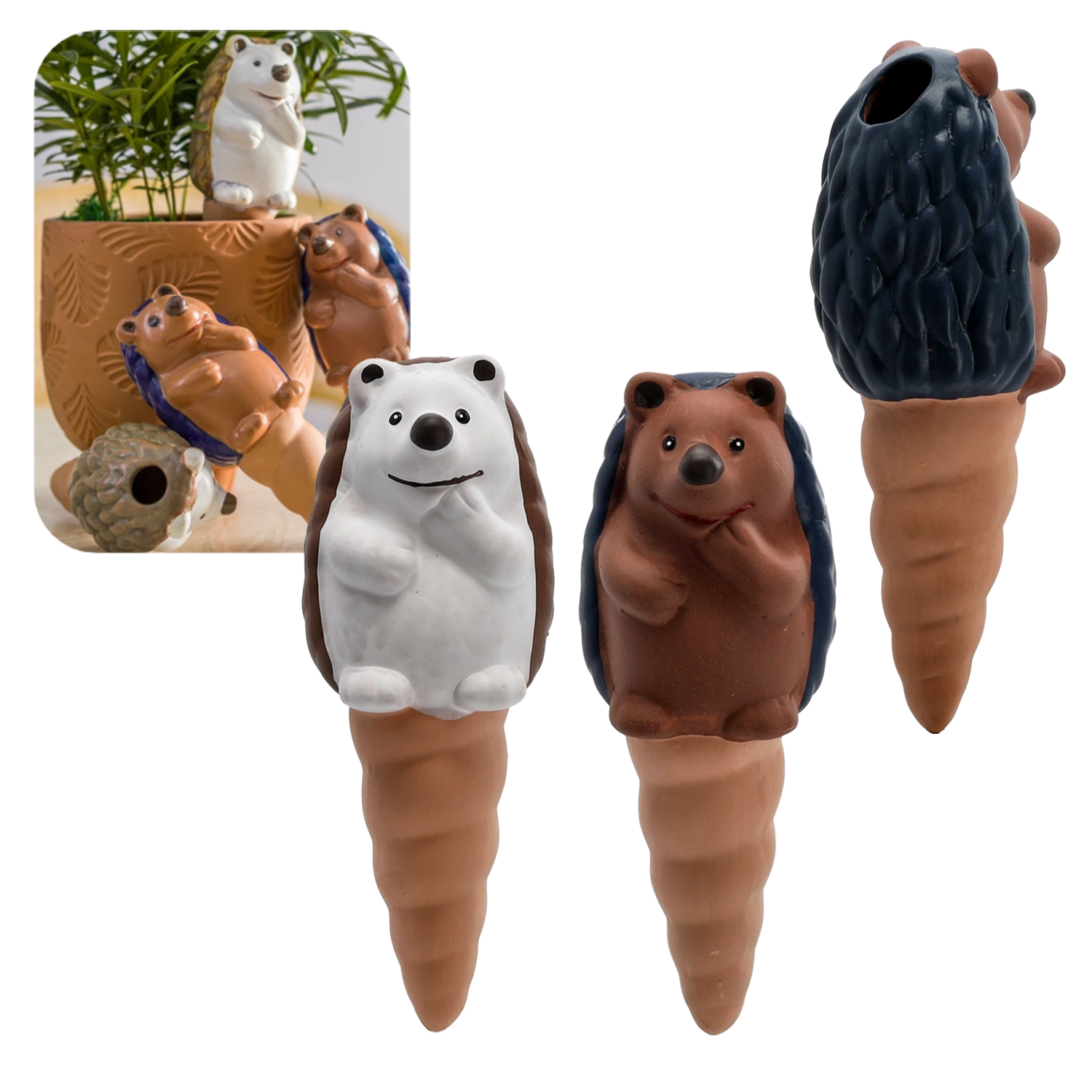 Thanks to the porous ceramic, water is released slowly and plants take exactly what they need. The decorative hedgehog design brightens interiors and patios and pairs well with planters of various styles.