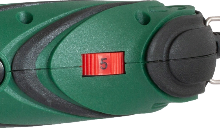 The package includes a 210-piece accessory set with grinding, cutting, drilling, and polishing attachments, plus a flexible shaft for delicate details and work in hard-to-reach areas. Everything is stored in a translucent carry case, so you always have order and a quick overview.