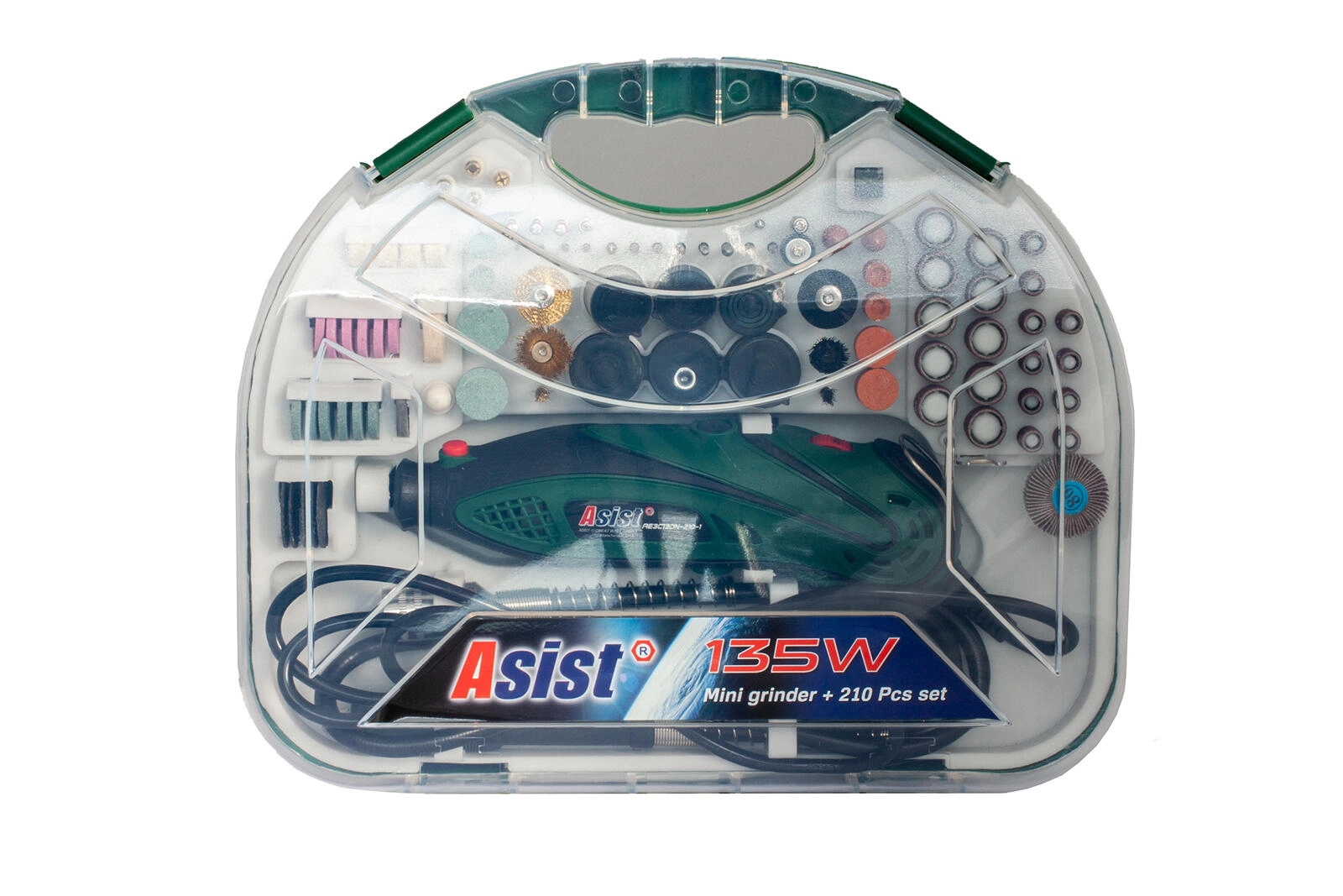 Mini straight grinder 135 W in case with 210-piece accessories ASIST