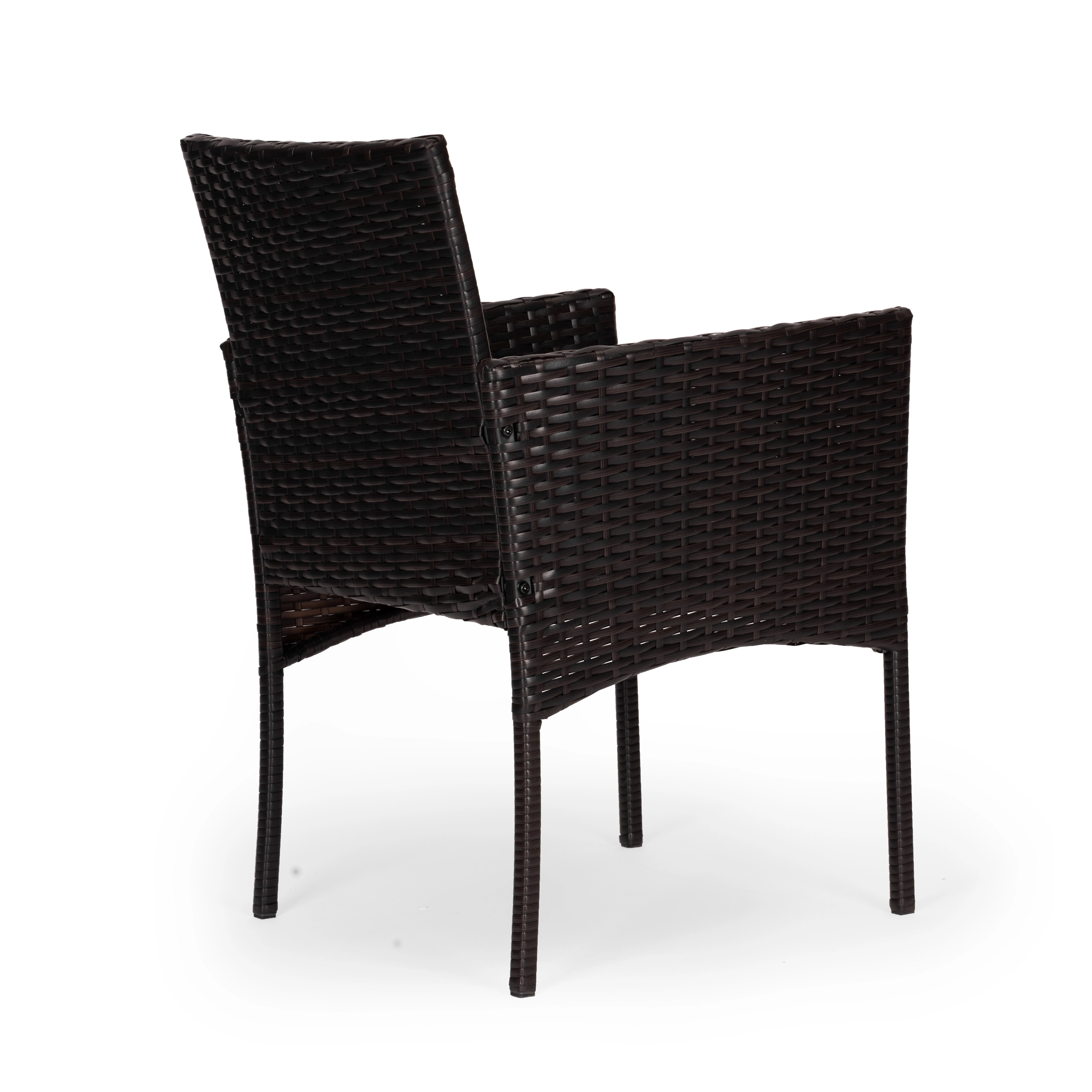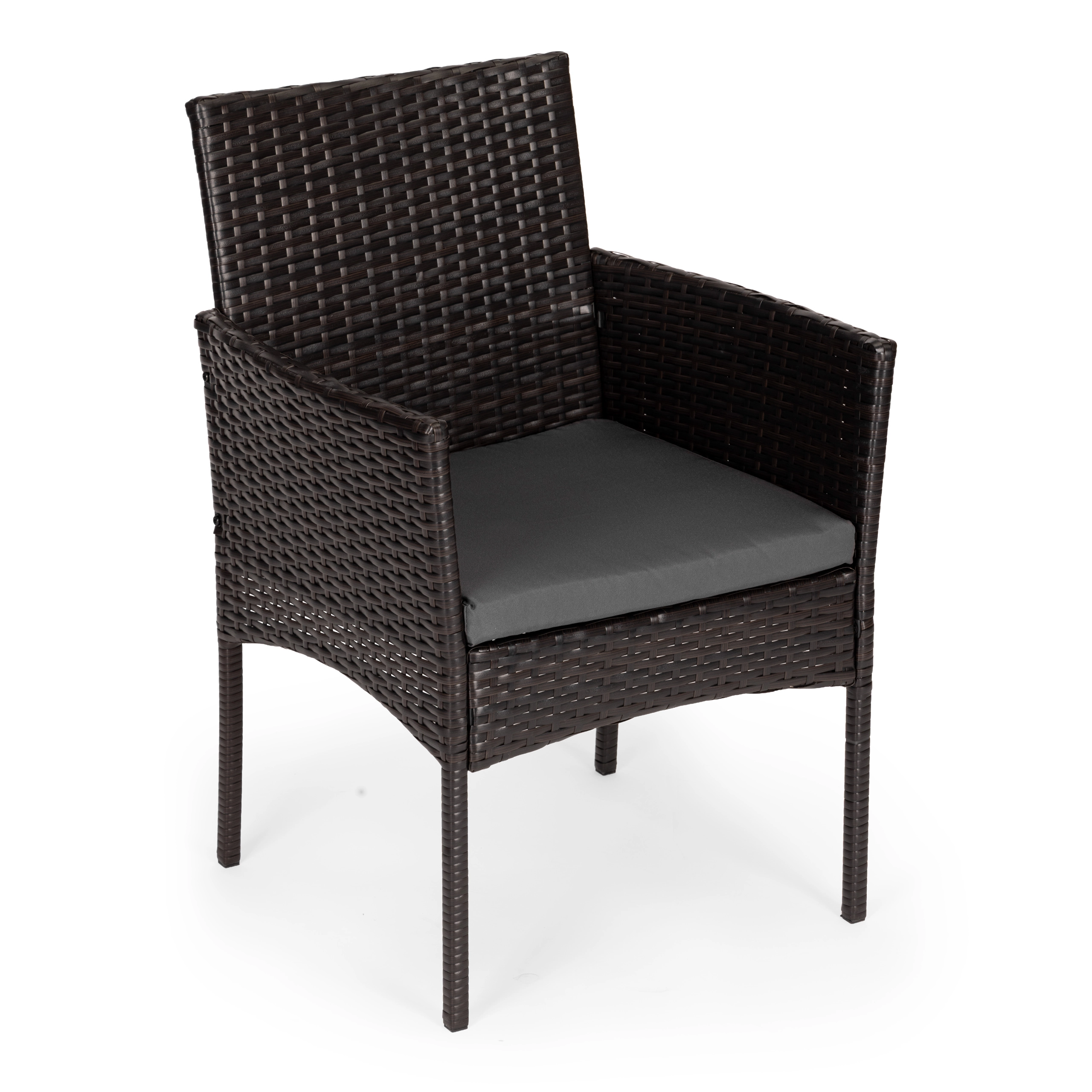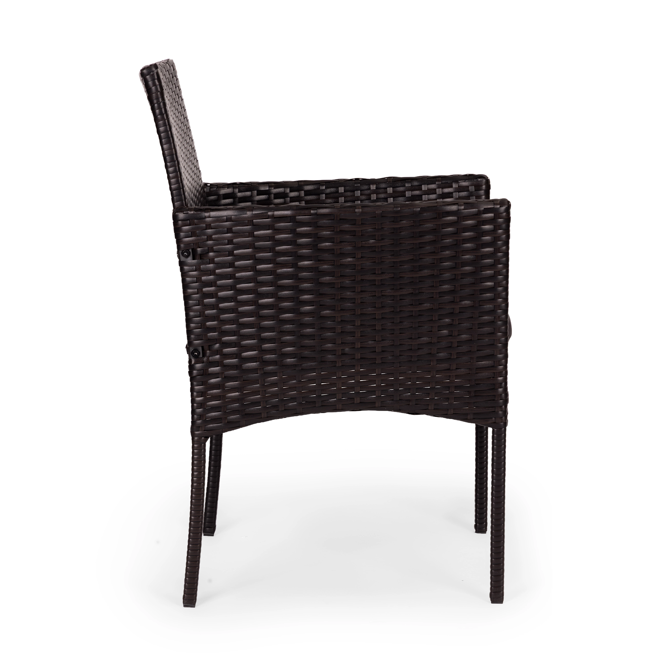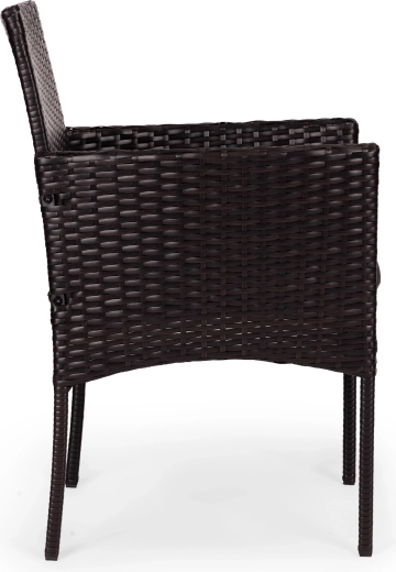 Create a cozy relaxation corner for your morning coffee or evening lounging. The set includes 2 comfortable armchairs with armrests and a square table with a tempered glass top. The durable combination of steel and technorattan ensures stability, long service life, and easy cleaning.