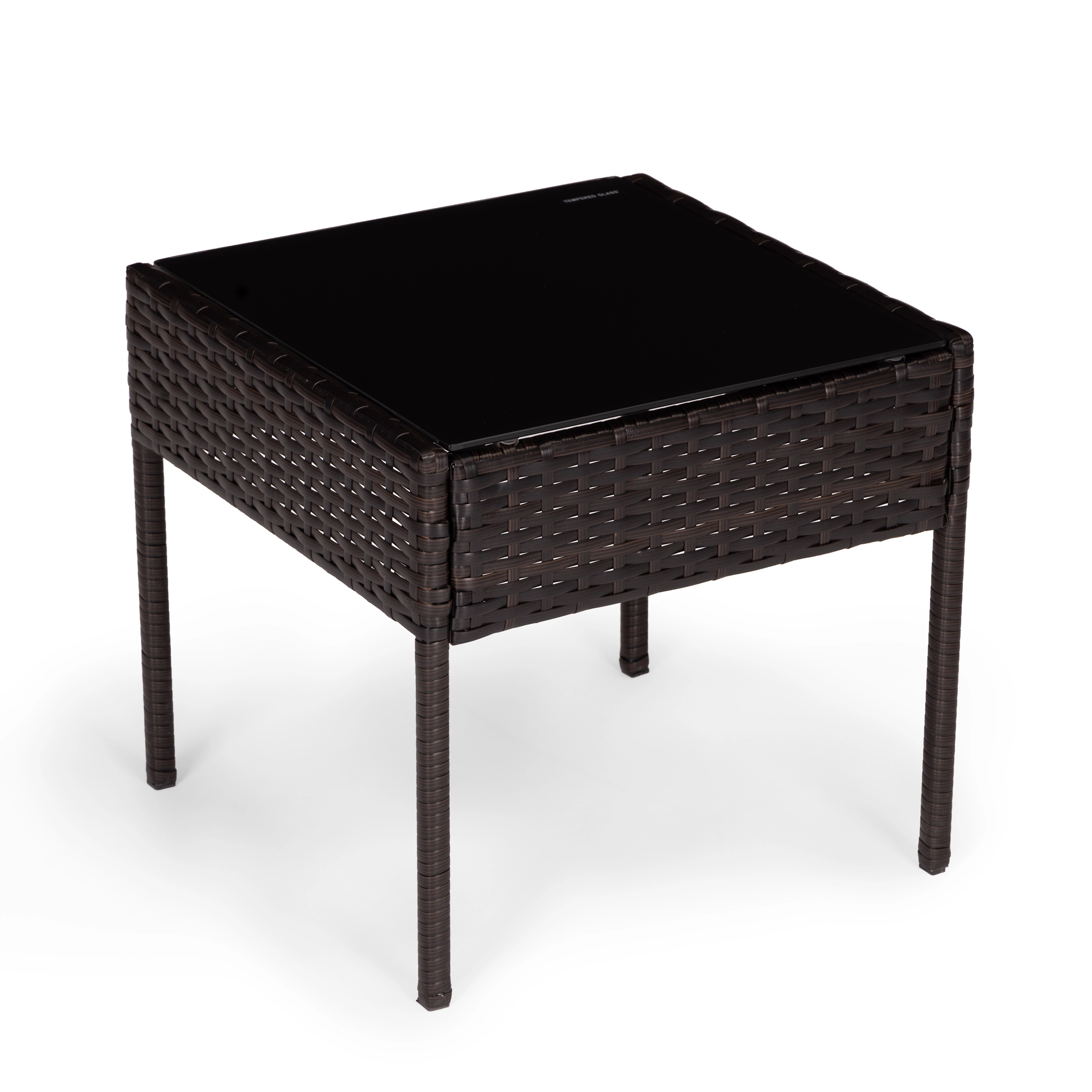 The square table with a 5 mm tempered glass top is scratch-resistant, easy to clean, and ideal for drinks and small items.