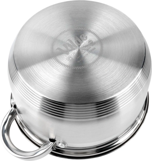 Thanks to the perfectly flat multi-layer base of the “Maximum Power” type, the pot efficiently stores heat and distributes it evenly across the entire surface. You can cook on lower power and save energy. The pot is suitable for gas, electric, ceramic, halogen, and induction hobs and can also be used in the oven up to 150 °C.