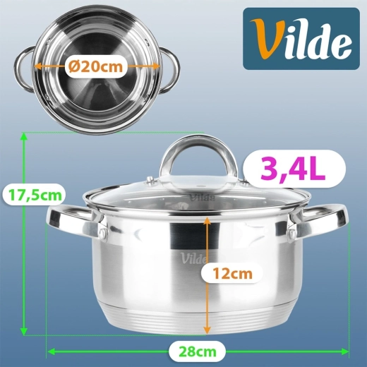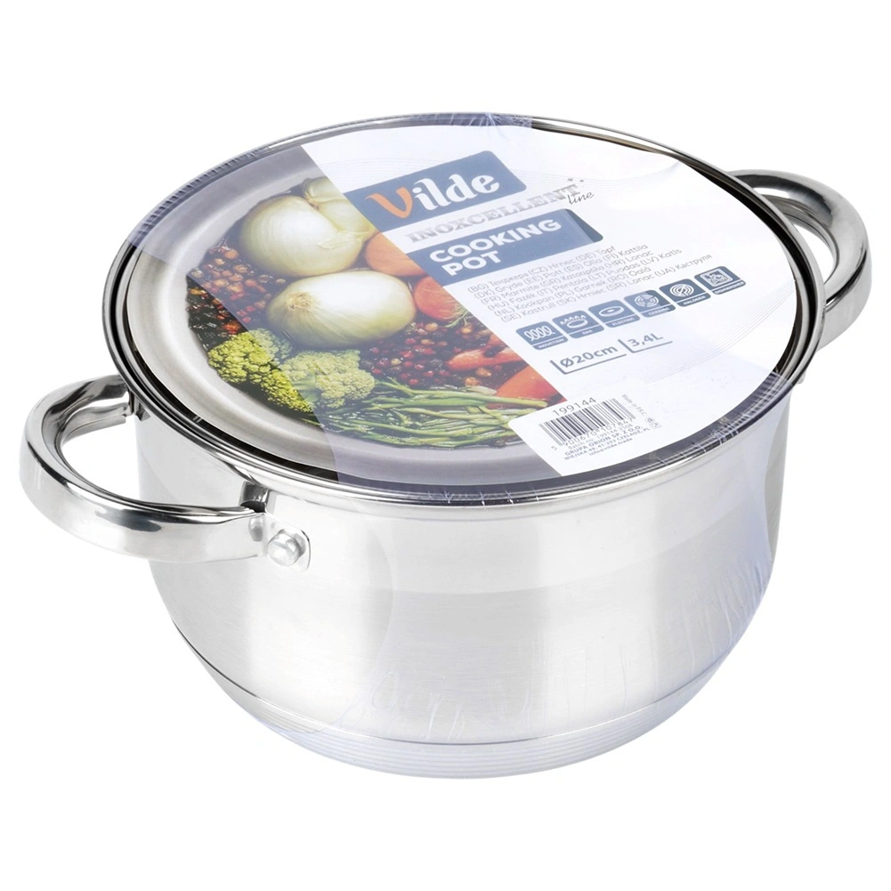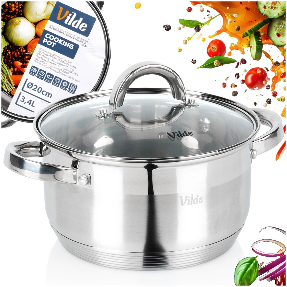 Practical stainless steel pot with a capacity of 3.4 l and a diameter of 20 cm with a glass lid with steam vent for convenient boiling, stewing and baking. Thanks to the Maximum Power thermic base, it heats up quickly and evenly, is energy-saving, and is suitable for all types of cookers including induction. High-quality stainless steel, easy maintenance, and dishwasher safe.