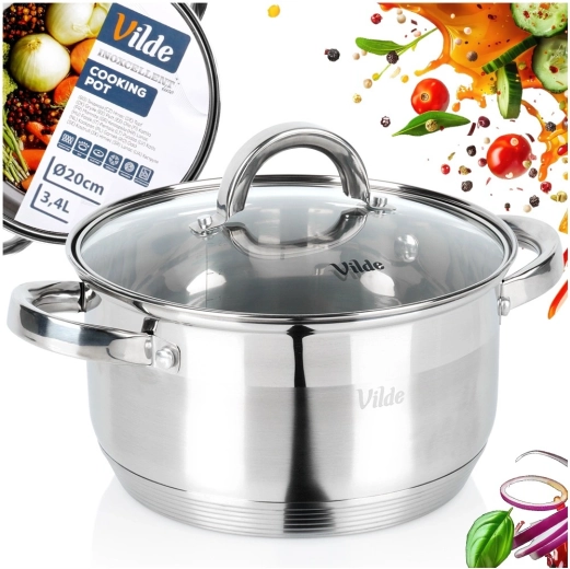 Stainless steel pot with glass lid 20 cm, 3.4 l