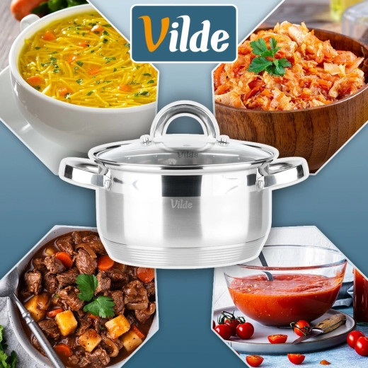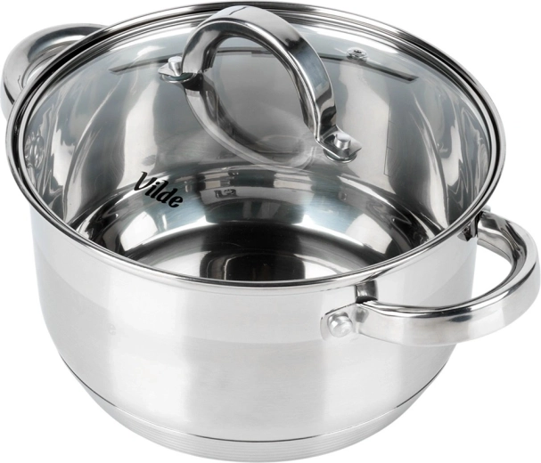 This versatile pot made from high-quality stainless steel combines polished and matte finishes for an elegant look and long service life. The glass lid with a stainless steel rim and handle lets you check your cooking without lifting it, and the steam vent prevents boil-overs. Ideal for everyday soups, sauces, vegetables, and main courses.