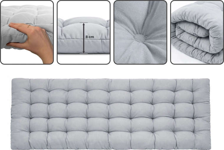 The soft, densely filled, quilted mattress keeps its shape and provides pleasant softness even during longer lounging. A removable pillow is included.