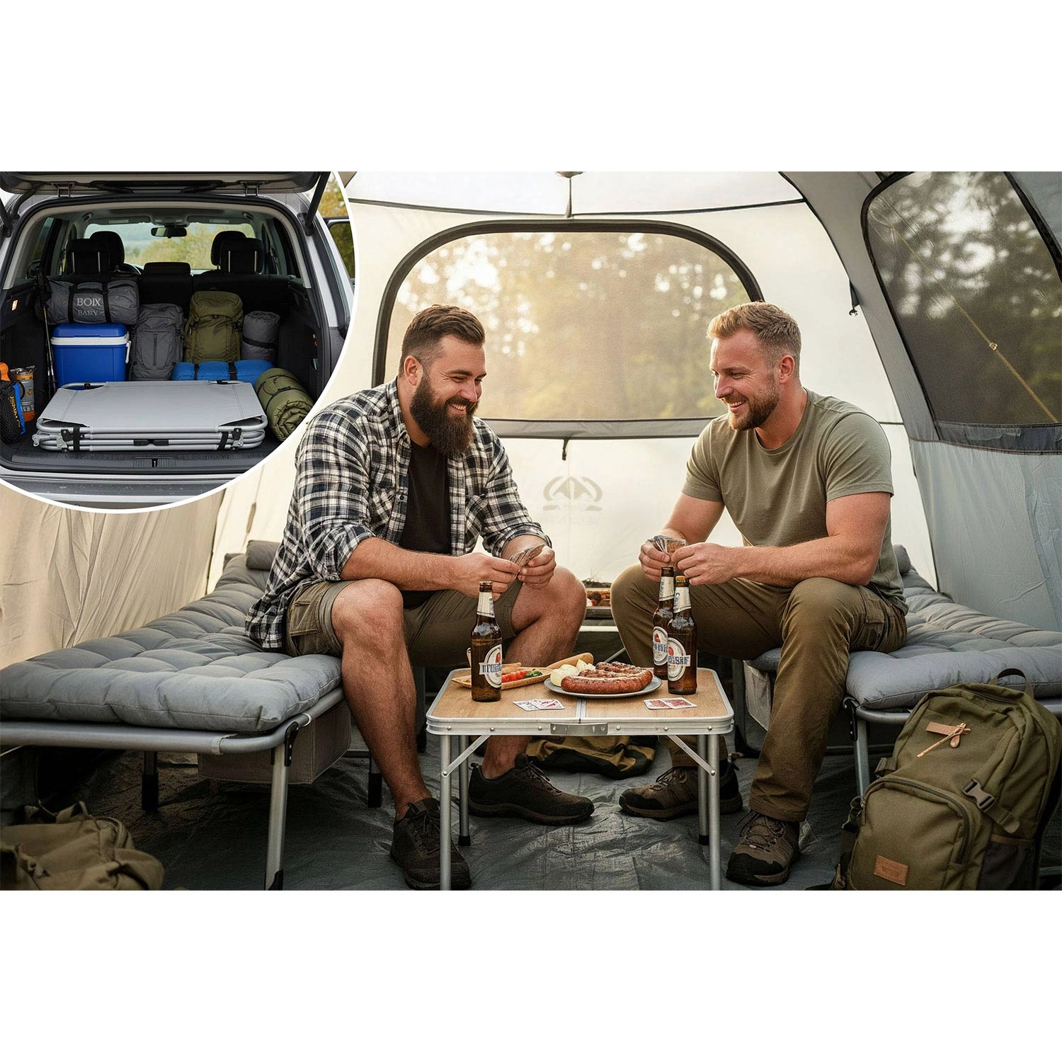 Use it for camping, in the garden, on the terrace, balcony, by the pool, or as a quick solution for overnight guests. The neutral grey color suits any setting and elegantly complements your outdoor relaxation zone.