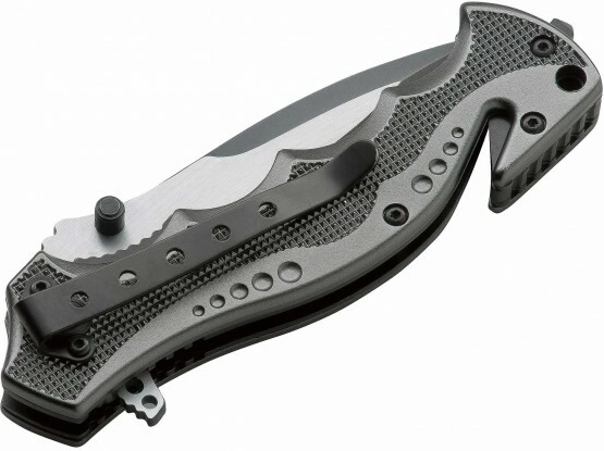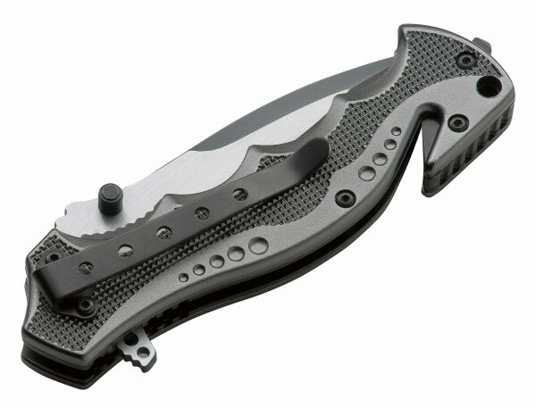 The ergonomic handle made of anodized aluminum in anthracite gray is durable, lightweight, and fits the hand perfectly. At the butt, you’ll find an integrated glass breaker and seatbelt cutter that save precious seconds during a rescue. A pocket clip allows comfortable and secure carry.