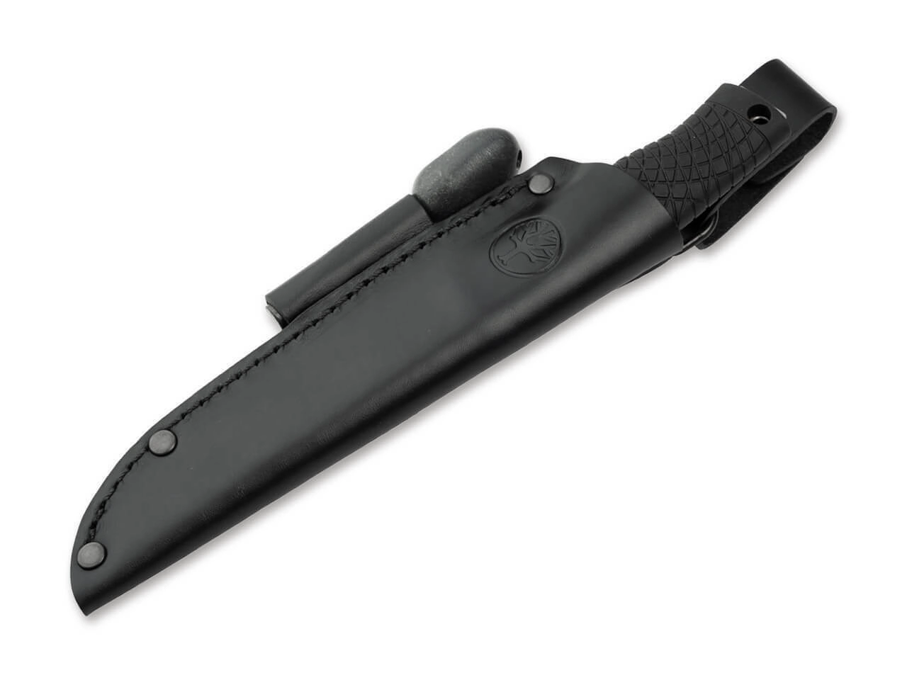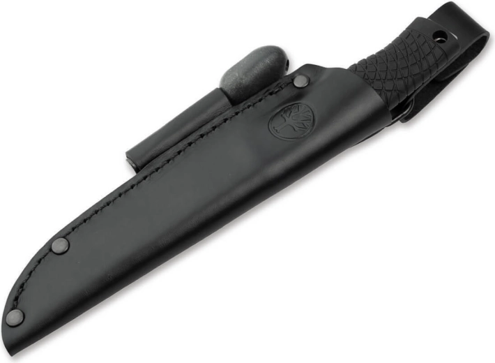 - Leather sheath with fire starter for safe carry and easy fire-making.