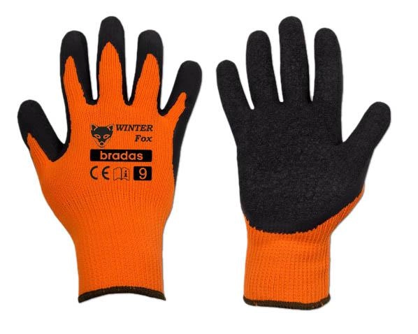 The Winter Fox protective winter gloves (size 10) are designed for safe and comfortable work in cold weather. They combine a knitted cotton lining for thermal comfort with a rough-textured latex coating for excellent grip, even on wet or slippery surfaces.