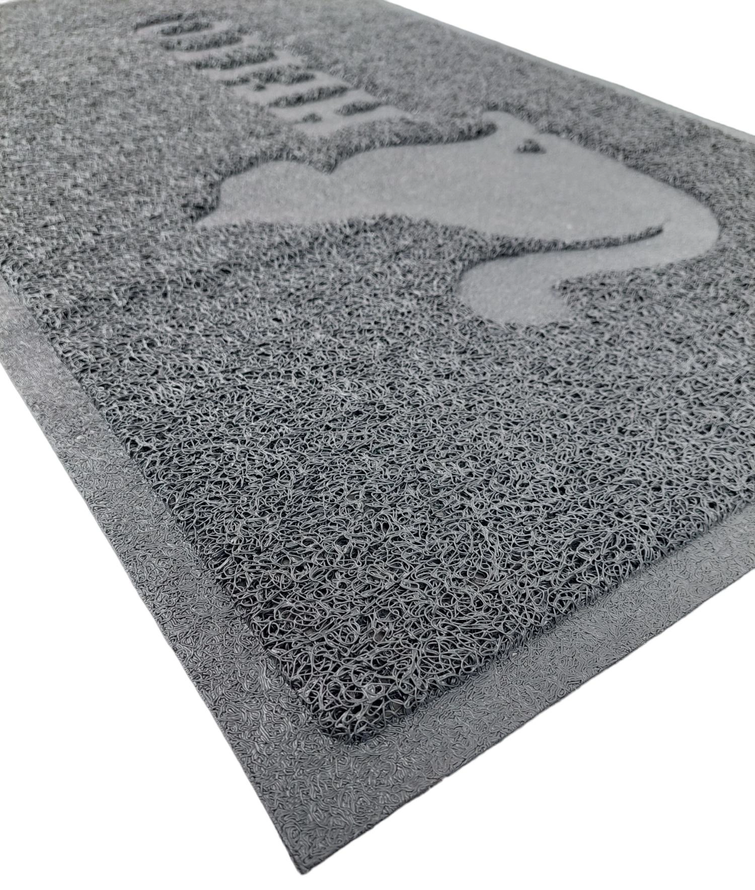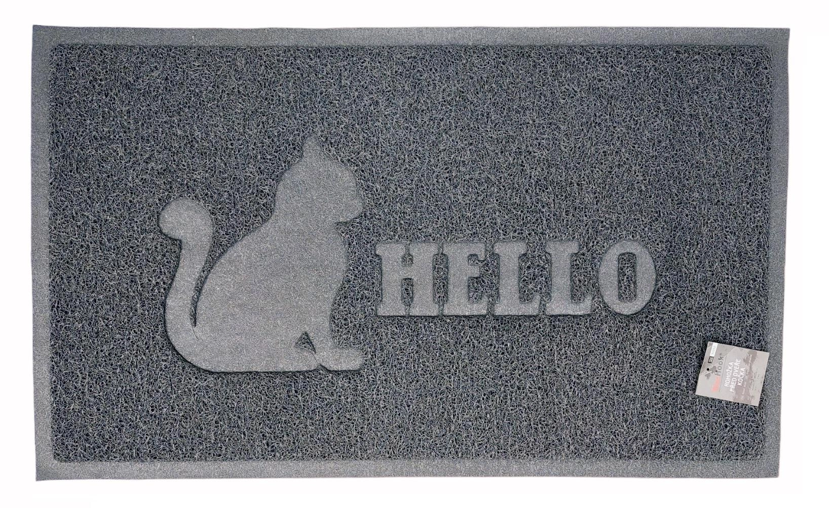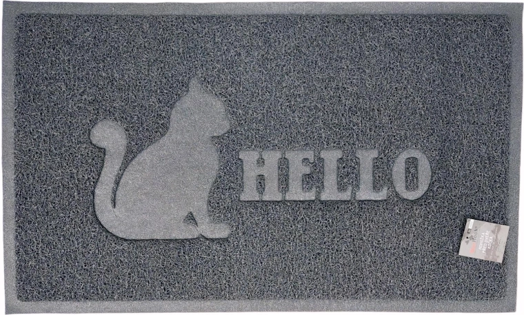Stylish doormat with a cat motif for a clean entrance to your home. Durable PVC material, practical size 45 × 75 cm, and a low profile of 7 mm for smooth door opening.