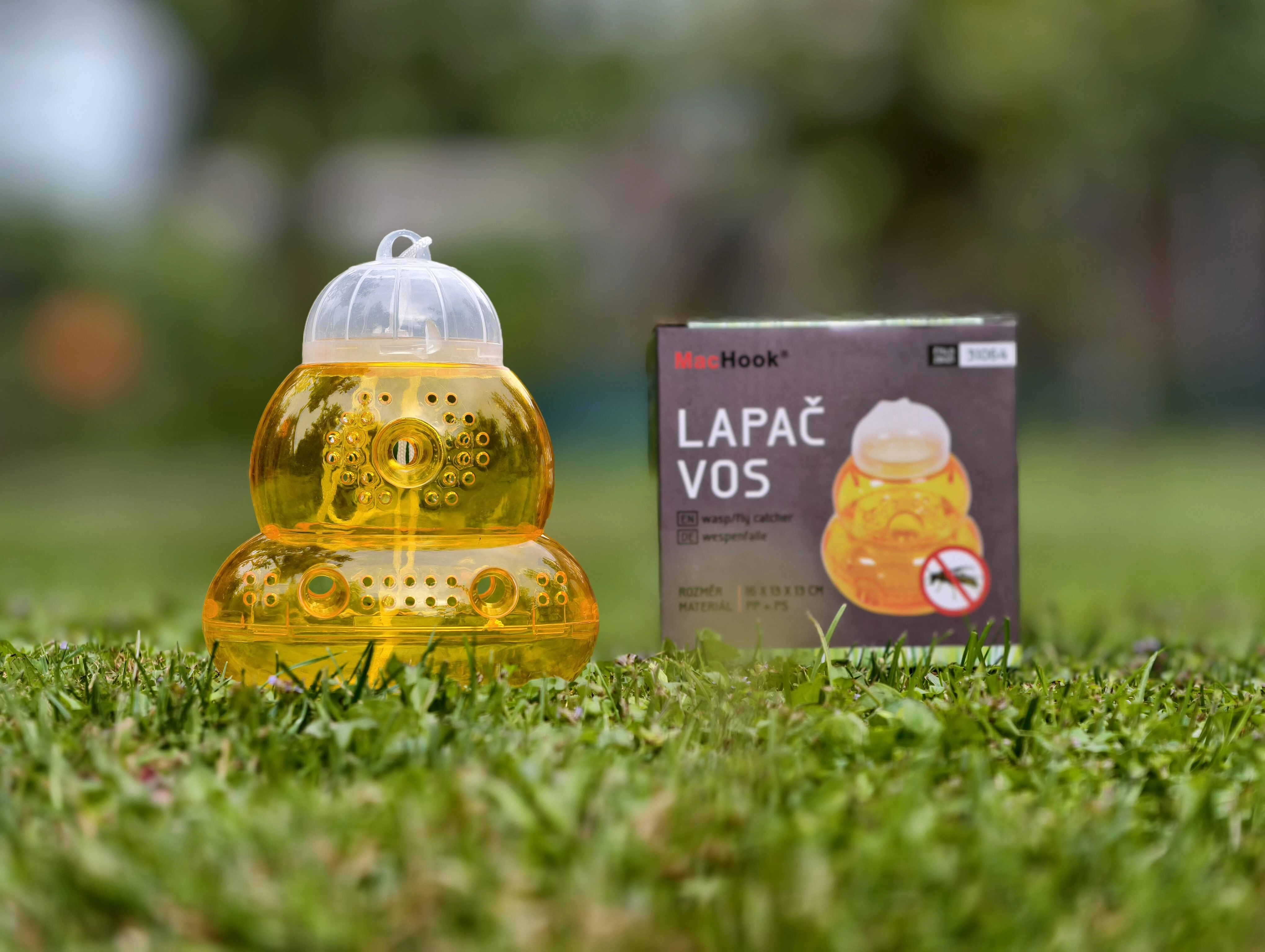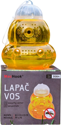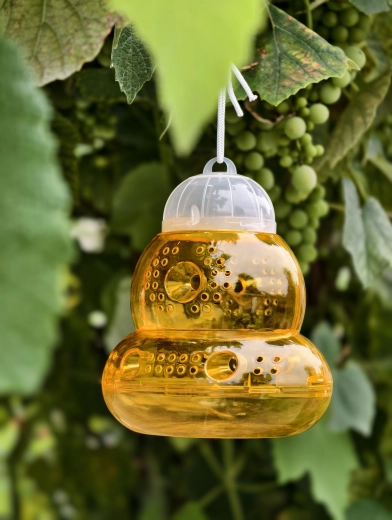 A practical hanging trap for wasps and flying insects that protects your garden, fruit trees, and seating areas. Thanks to its effective entry holes and the option to add bait, it efficiently attracts and traps pests. The durable PP + PS construction, easy hanging, and reusable design make this trap a reliable helper against wasps and fruit flies.