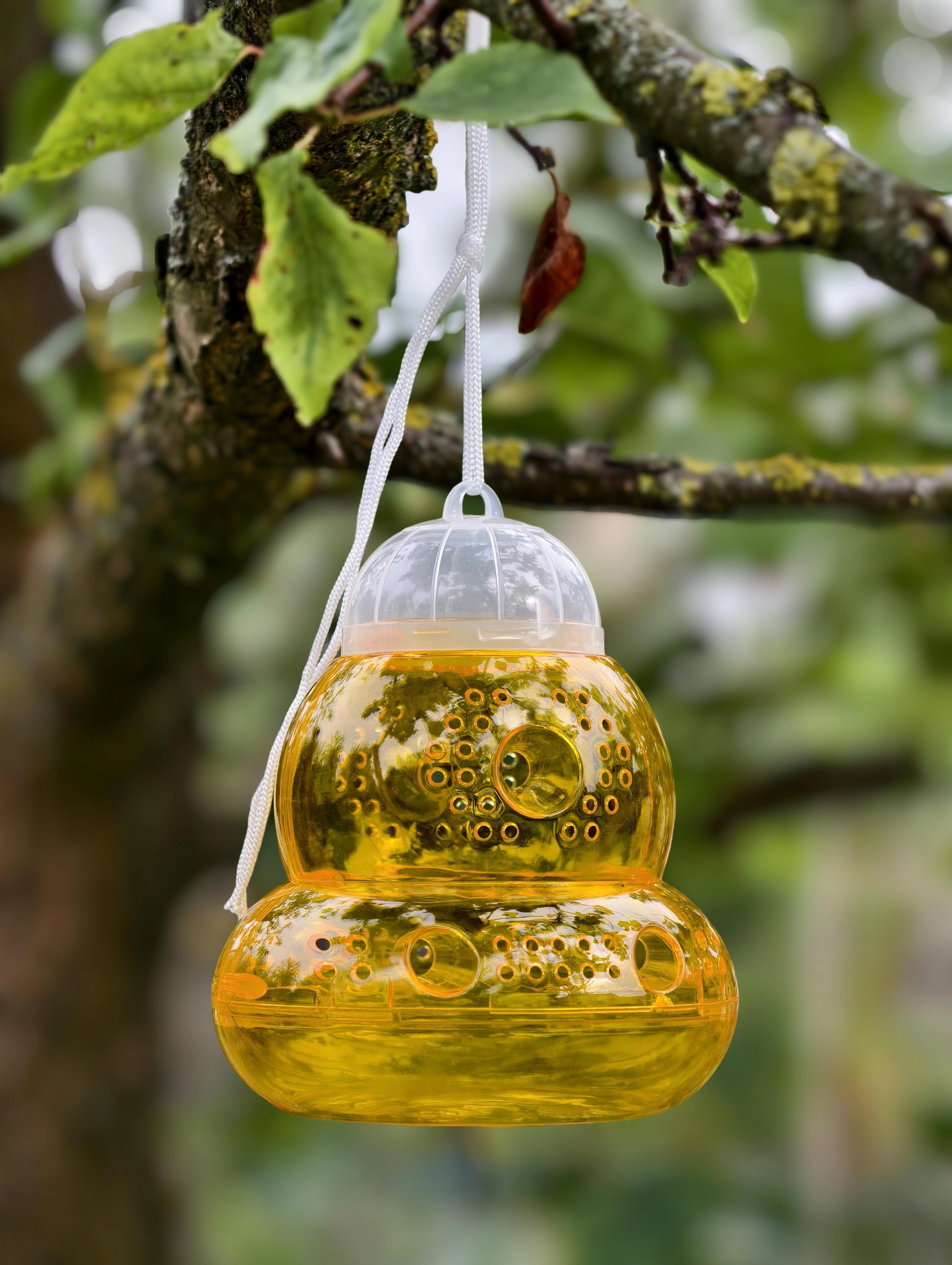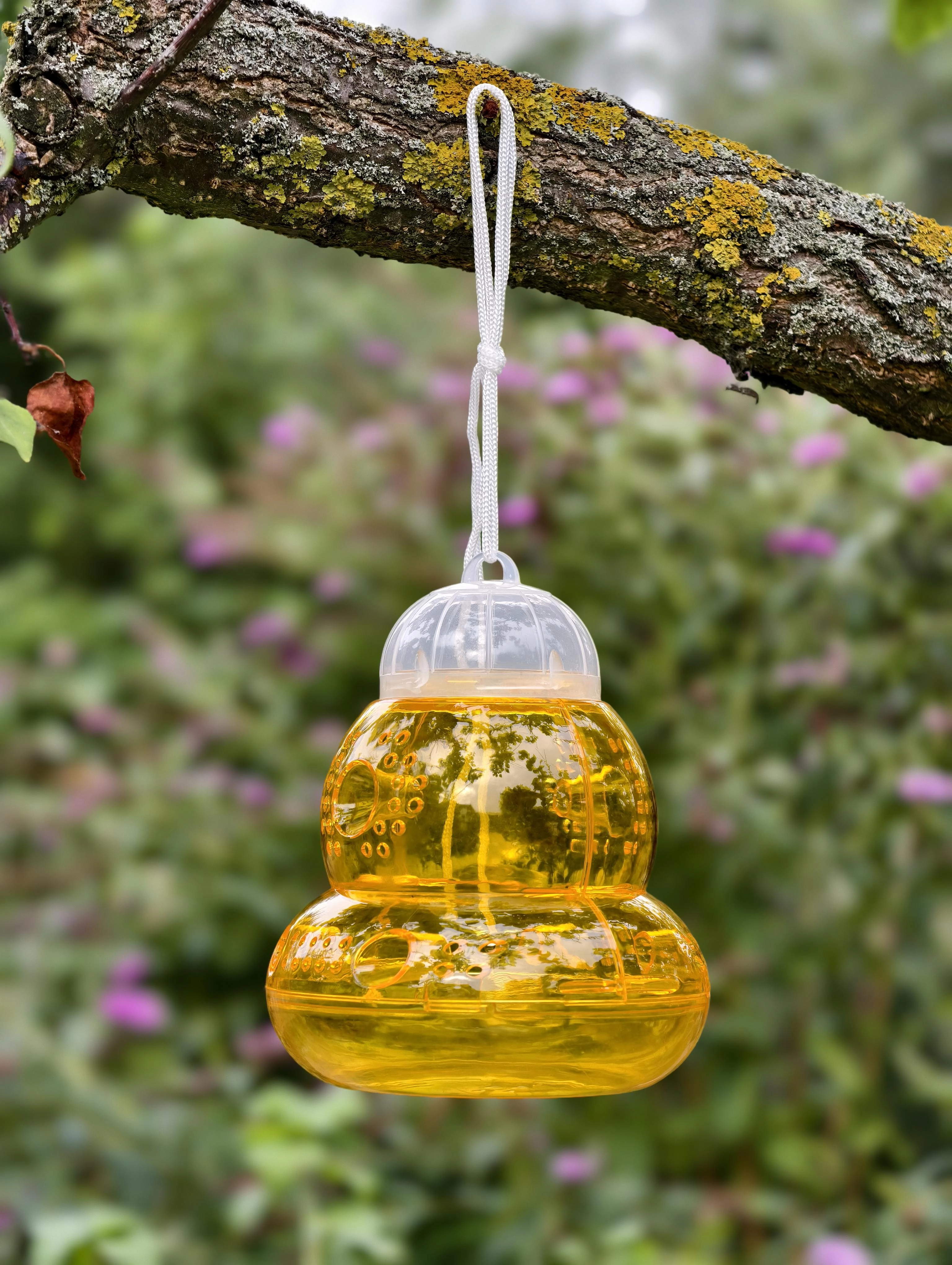 The integrated eyelet and string let you quickly hang the trap on a tree, pergola, or fence, so you can easily cover critical spots in the garden.