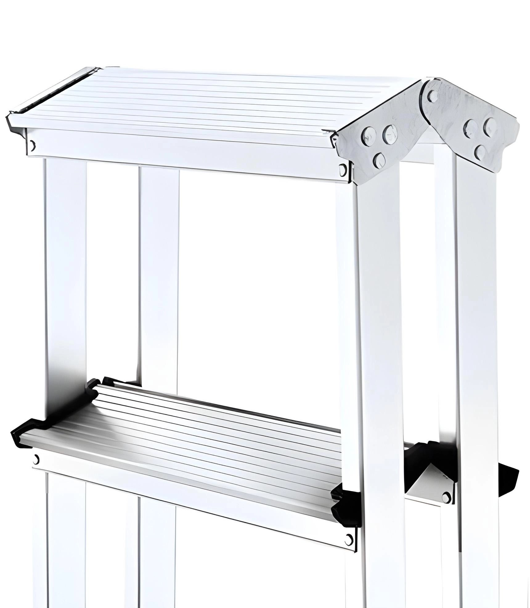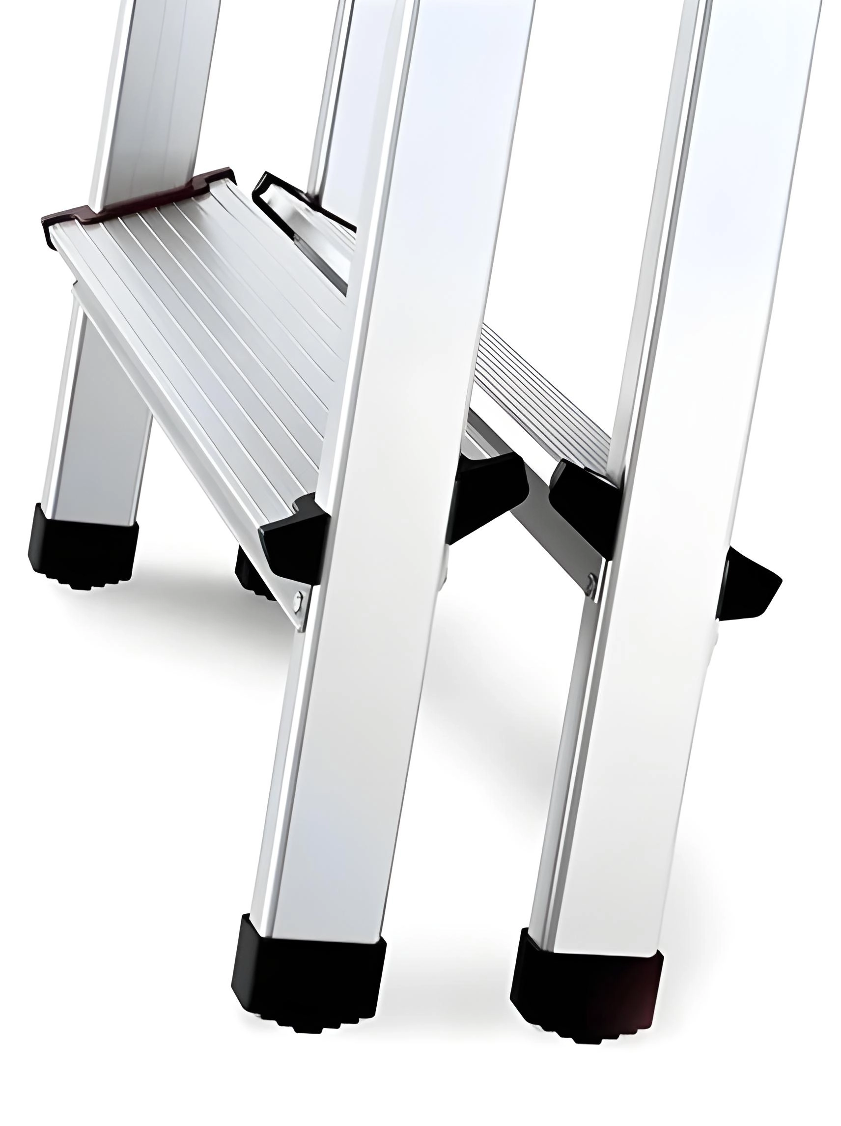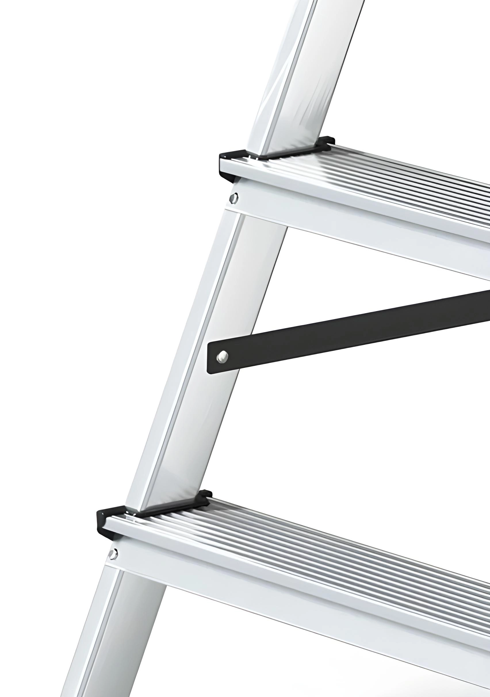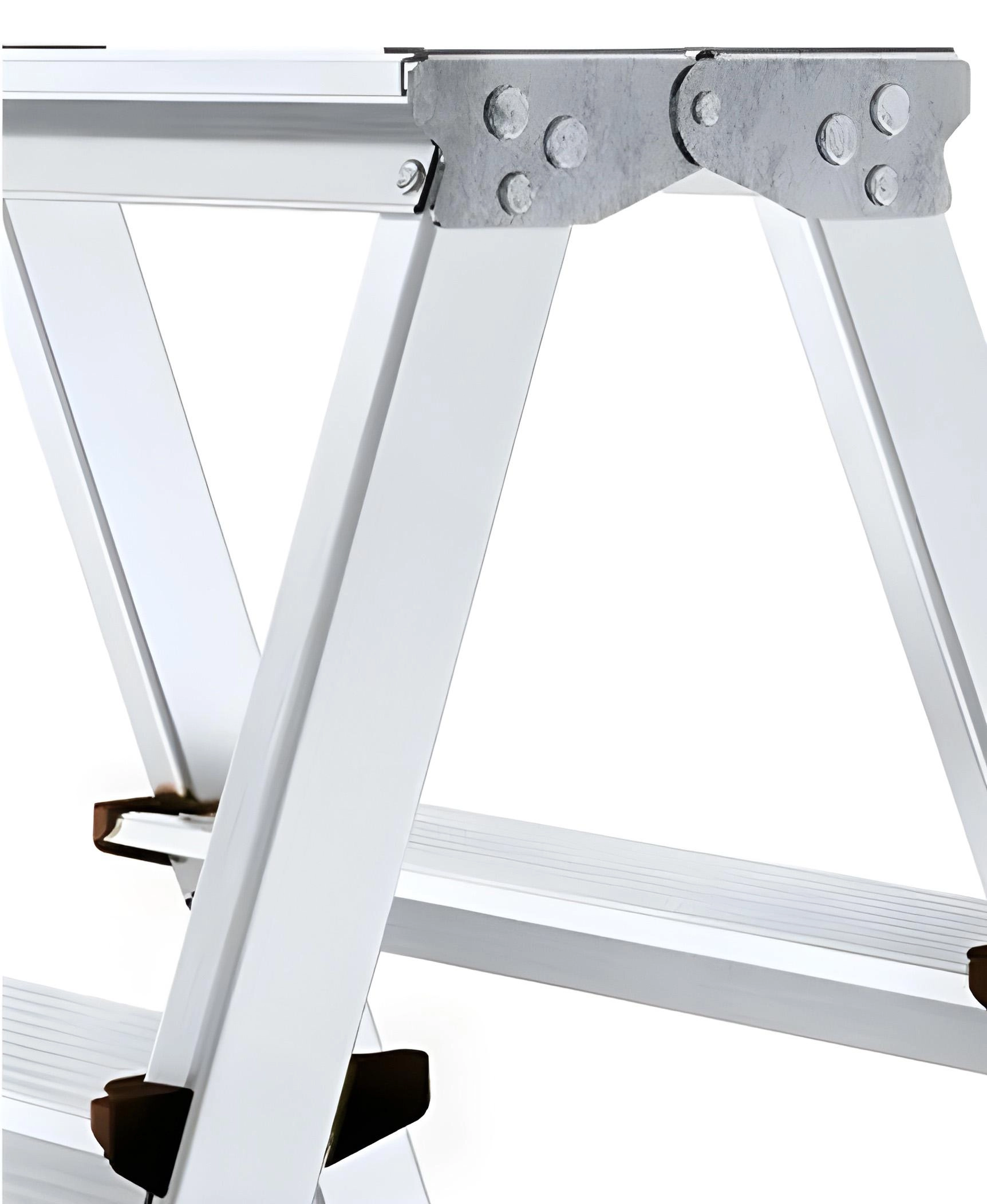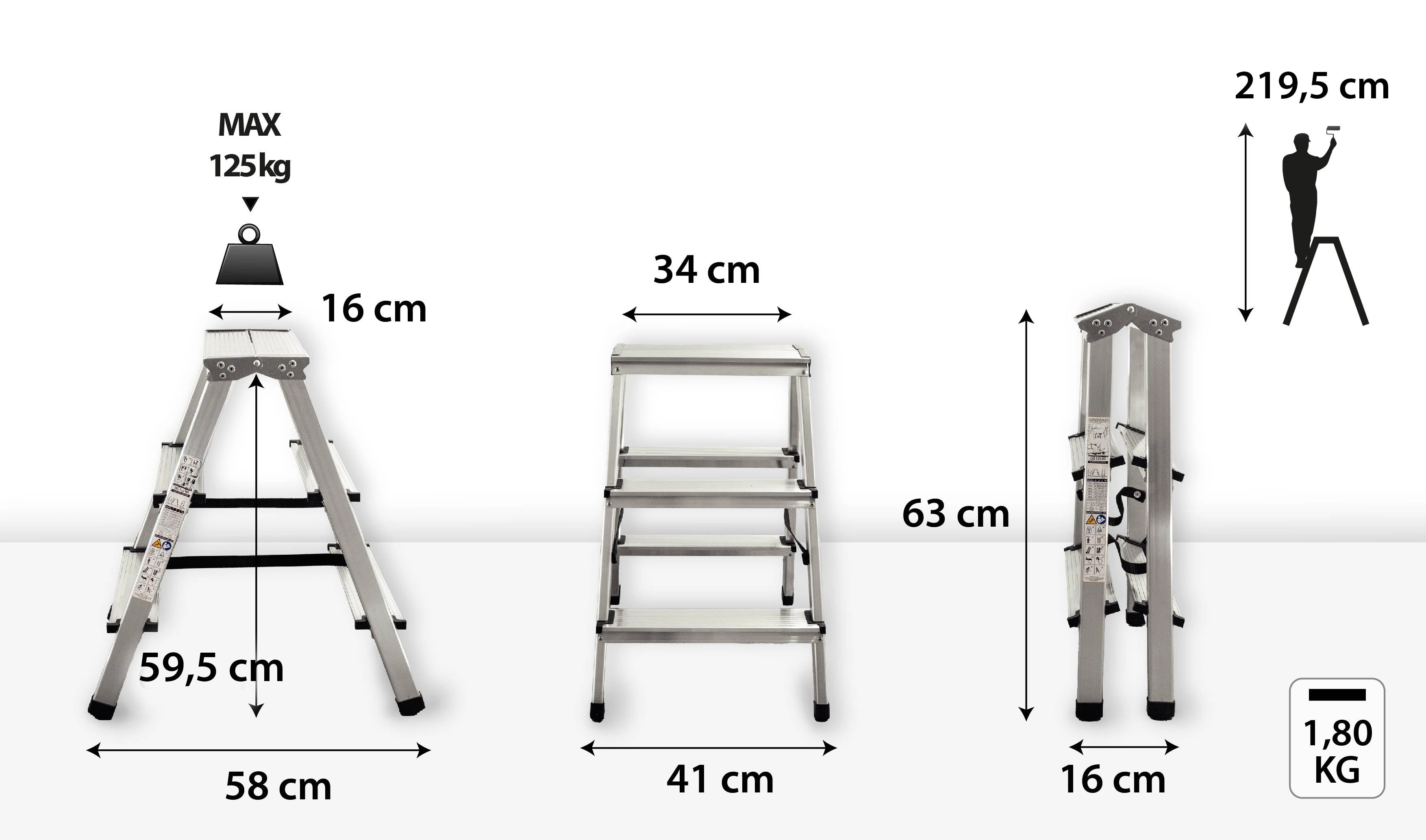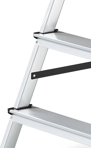 Stability is enhanced by non-slip plastic end caps and braces that minimize wobbling. With a load capacity of 125 kg and a working height up to 2.2 m, they are a great choice for safely reaching higher shelves, windows, or ceiling lights.