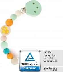 The Small Foot Lex wooden pacifier clip combines natural materials with playful colors, making it not only practical but also a beautiful accessory for a stroller or outfit. The smooth beads and shapes (including stars) invite exploration with hands and eyes and naturally support the development of fine motor skills and sensory perception.