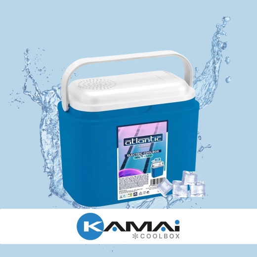 Enjoy fresh refreshments anytime, anywhere. The KAMAI Atlantic electric car cooler with a capacity of 10 l is powered from a standard 12 V car socket and its effective insulation keeps low temperatures for a long time. Compact dimensions, durable polypropylene construction, and a folding handle ensure easy portability.