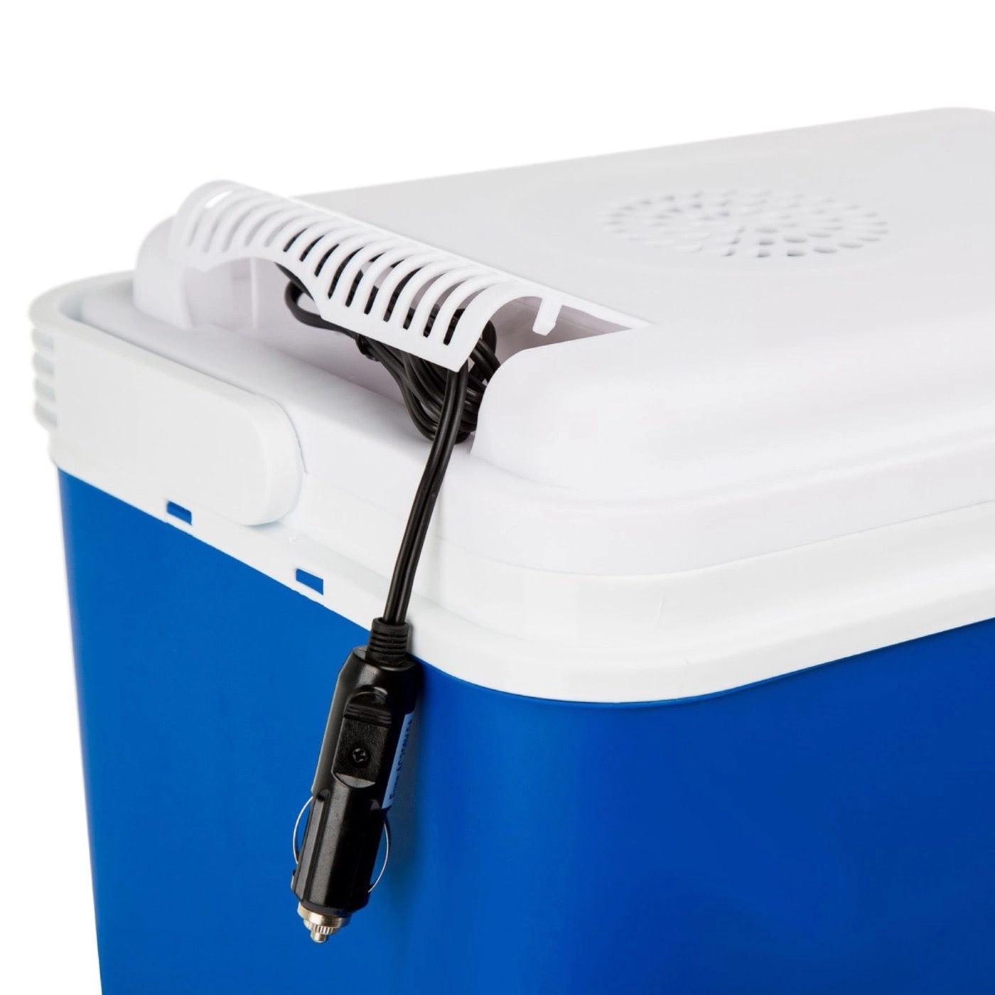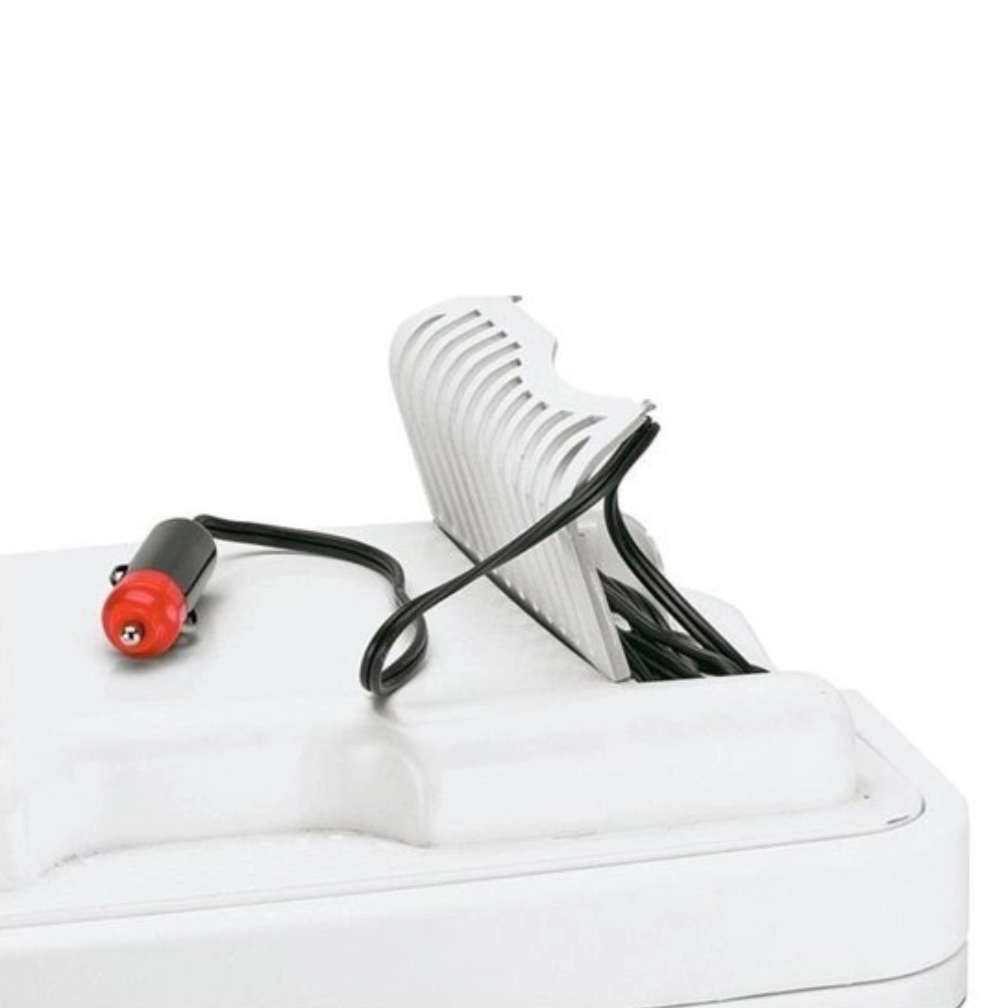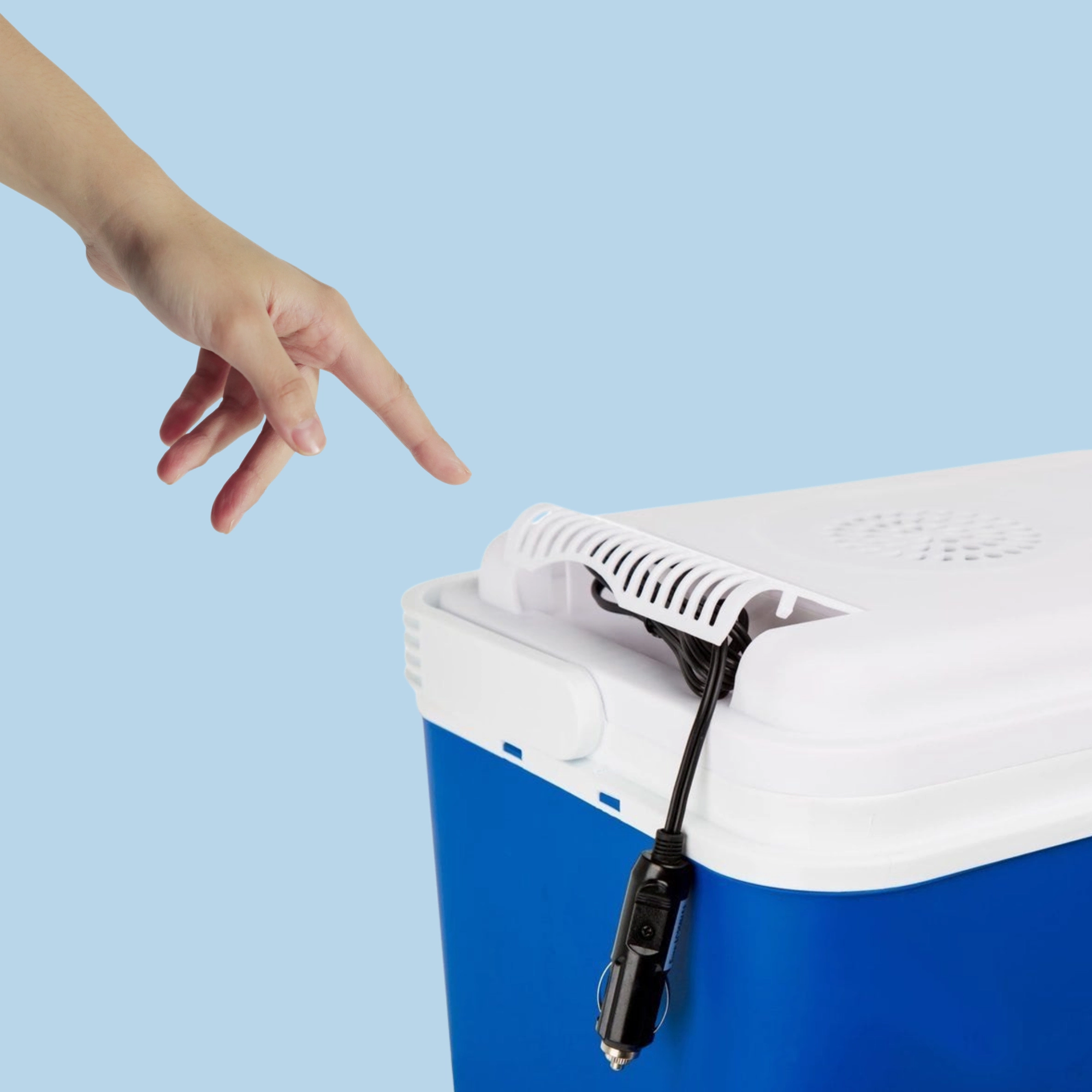 Plug the cooler into your car socket and enjoy cold drinks while driving. Ideal for road trips, camping, and boating.