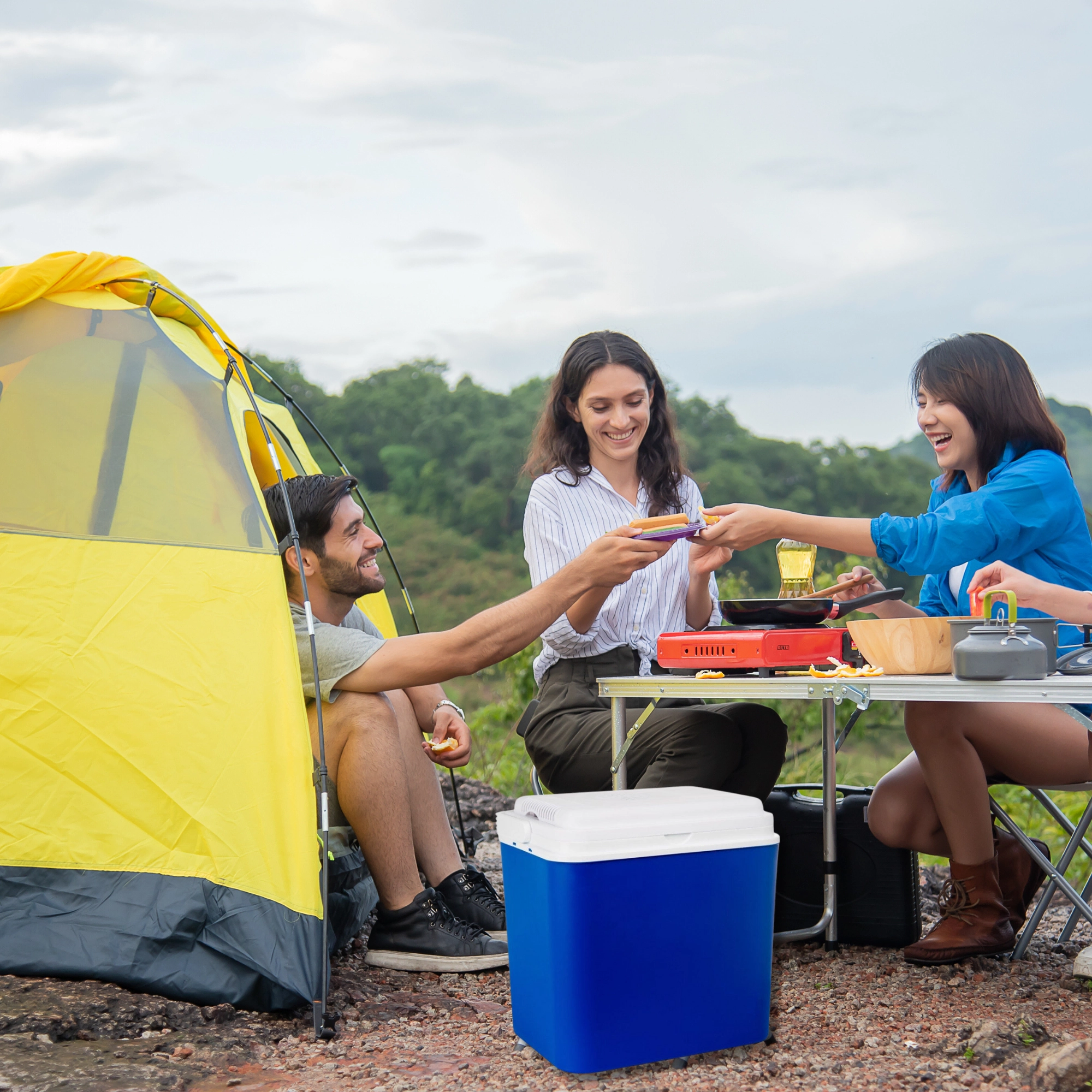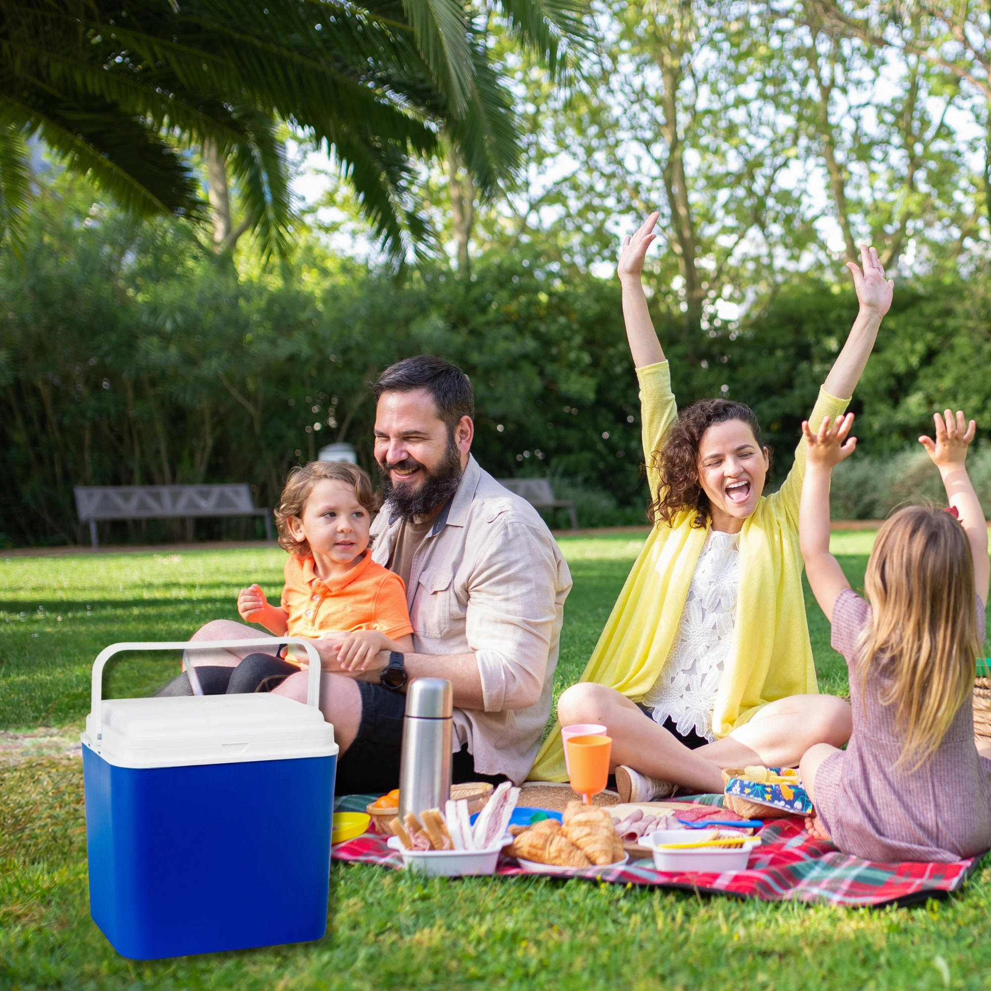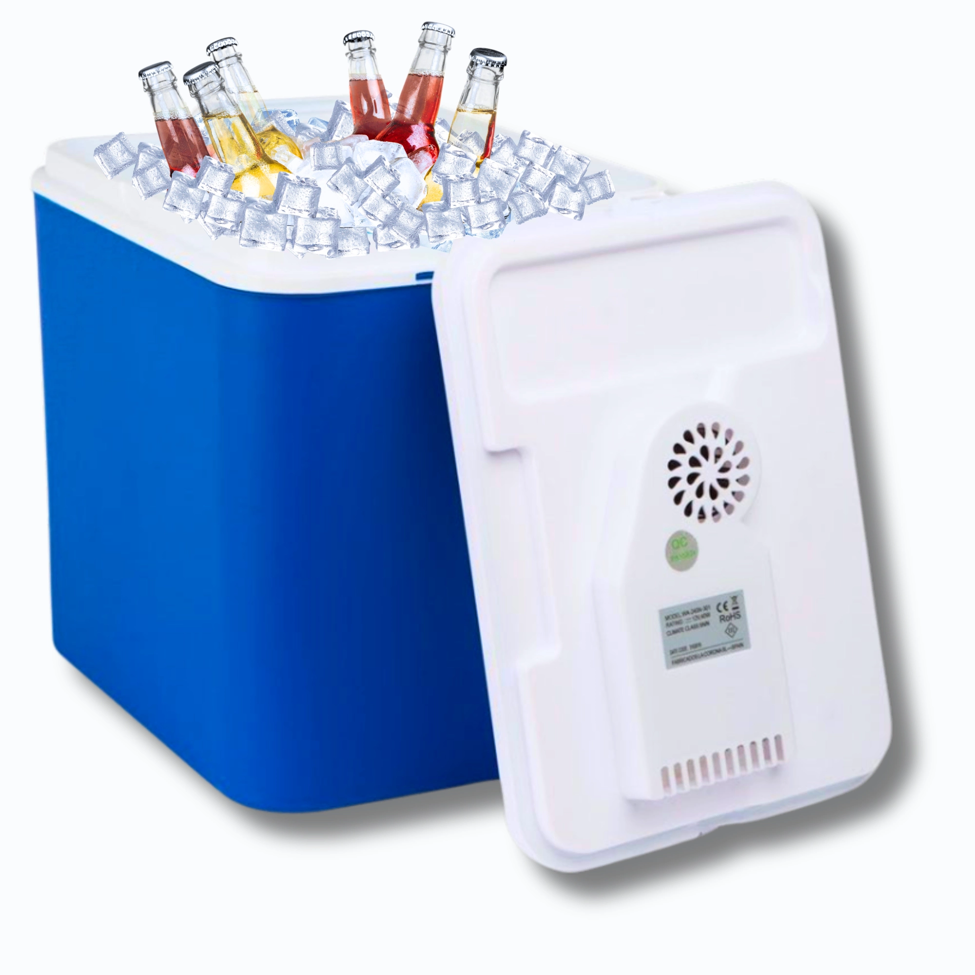 An integrated cooling module in the lid and a 12 V car connector keep your drinks and food fresh throughout the journey. Ideal for cars, RVs, and boats.