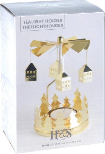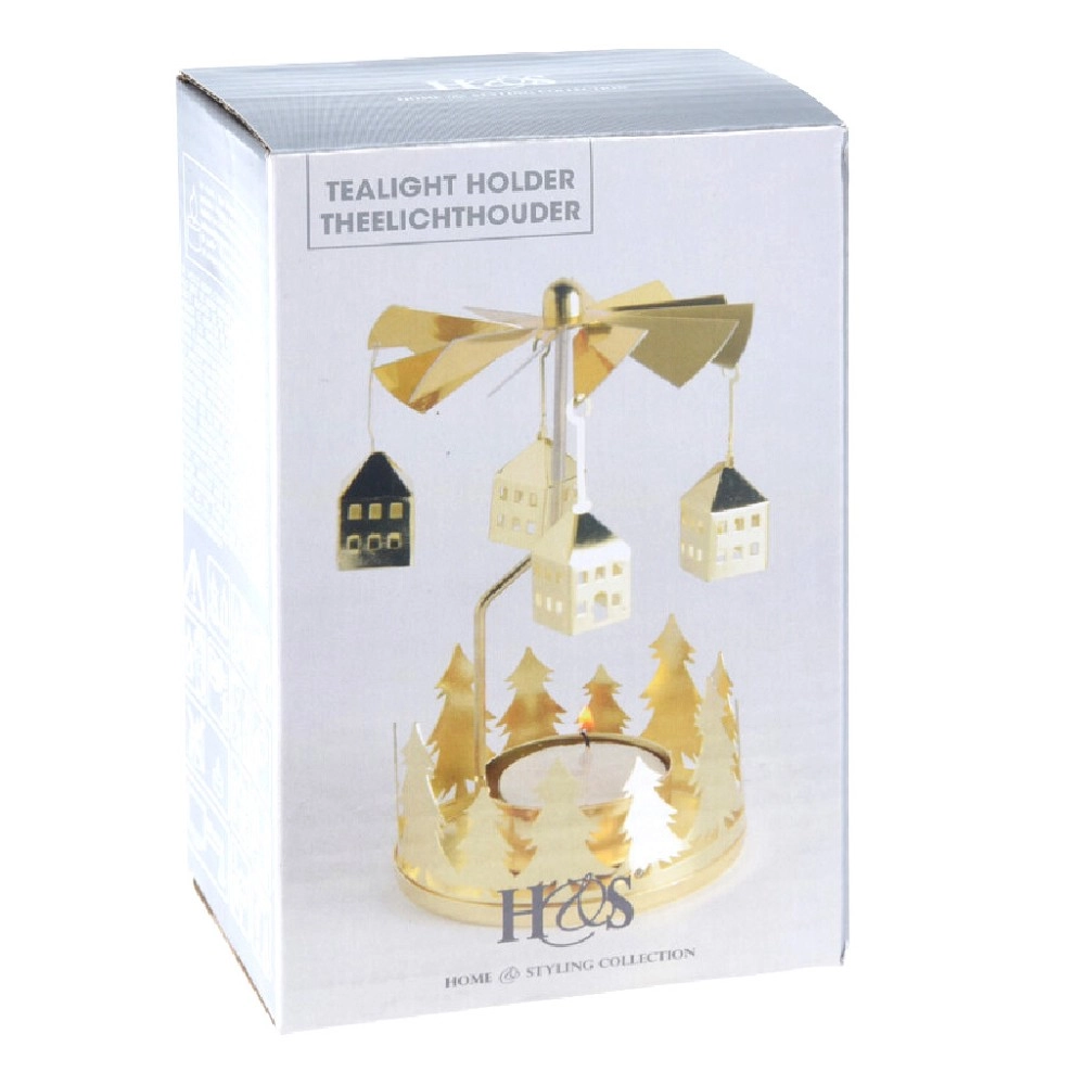 Beautify your home with a charming rotating carousel that spins on its own thanks to the warmth of a tea light candle, filling the space with a play of light and shadows. The gold finish looks elegant and pairs perfectly with both modern and traditional interiors.