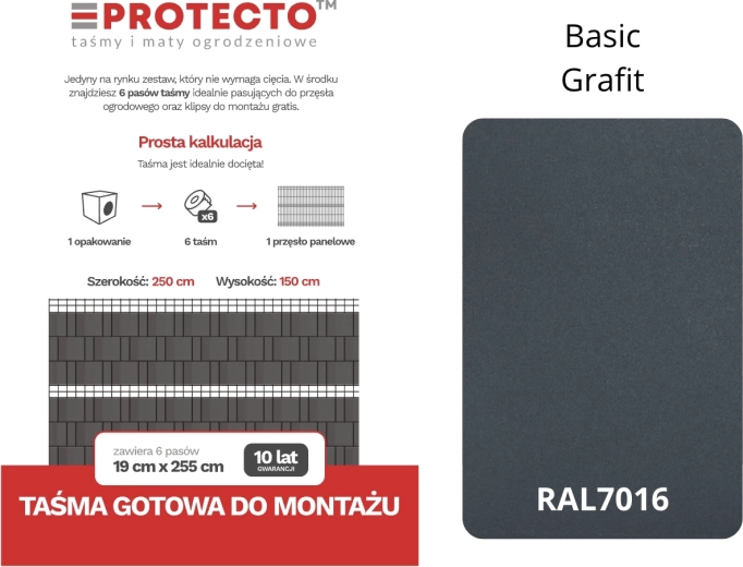 No more wasting time and material – one pack = one fence field up to 2.55 m wide. Simply feed the strips between the panel wires and you’re done. The screen is suitable for 2D/3D fence panels, balcony railings, and fence infills, and thanks to its matte graphite look it gives your fencing a modern style.
