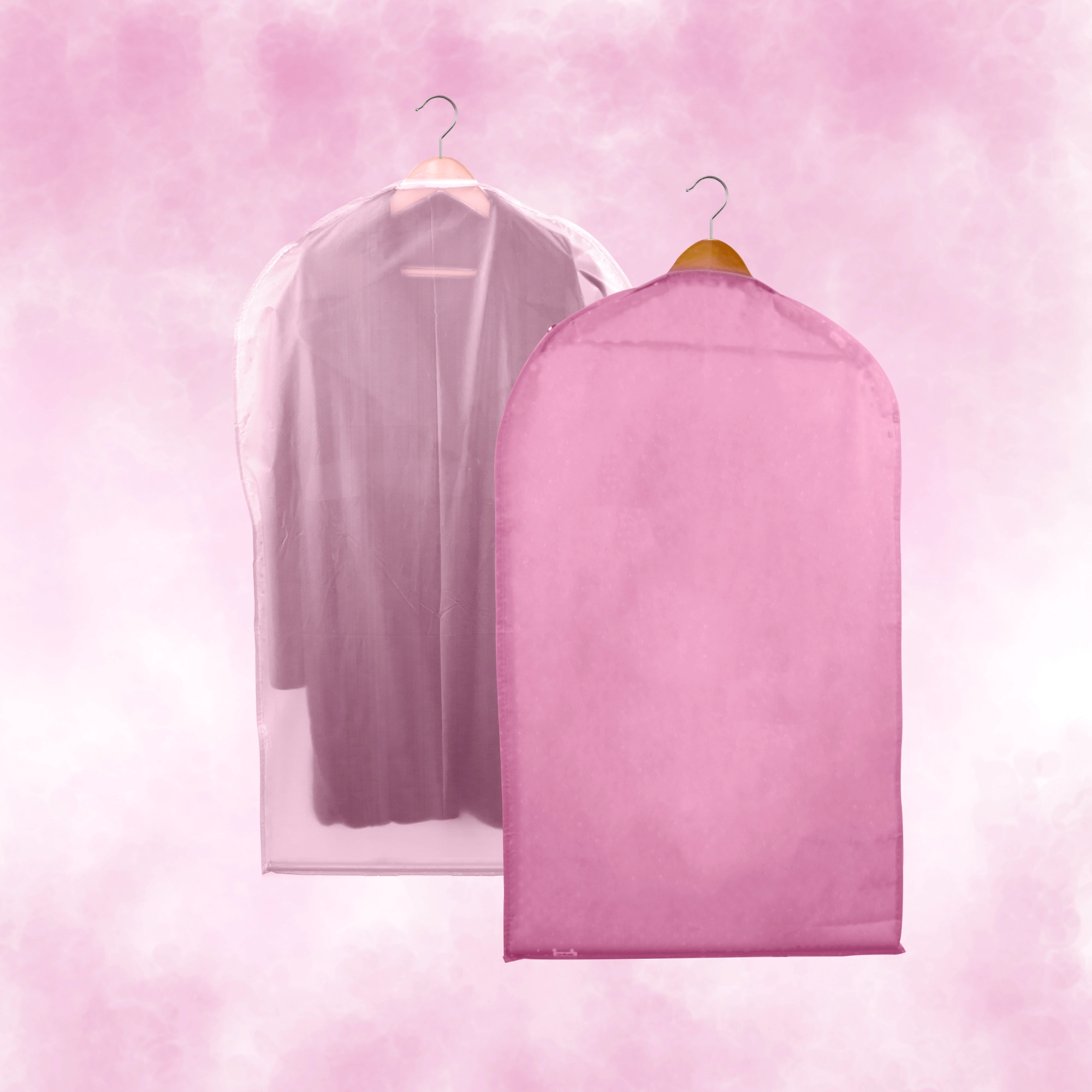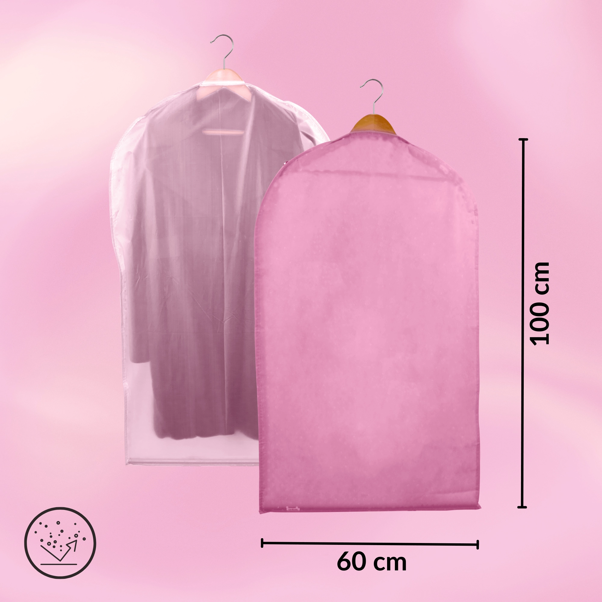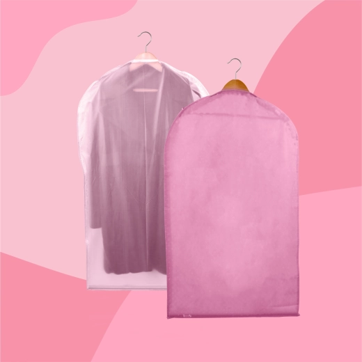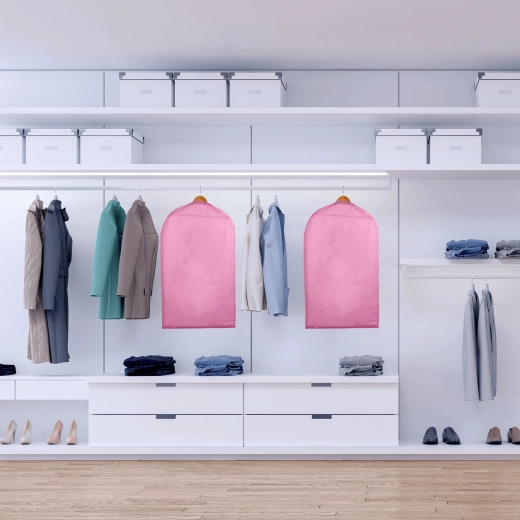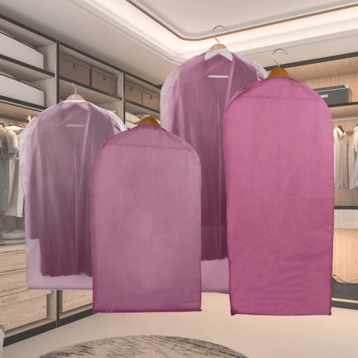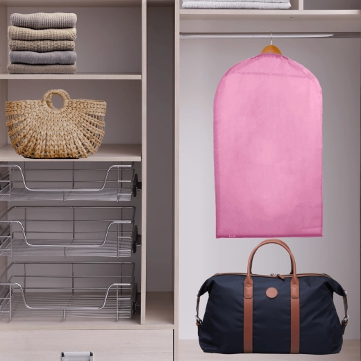 Keep your wardrobe perfectly organized and your clothes like new. This pink cover made of high-quality non-woven fabric protects against dust and dirt, features a full-length practical zipper, and a top opening for a hanger. Thanks to the semi-transparent front, you can quickly find what you need. Ideal for dresses, coats, and shirts – protection against dust, quick content overview, easy hanging.