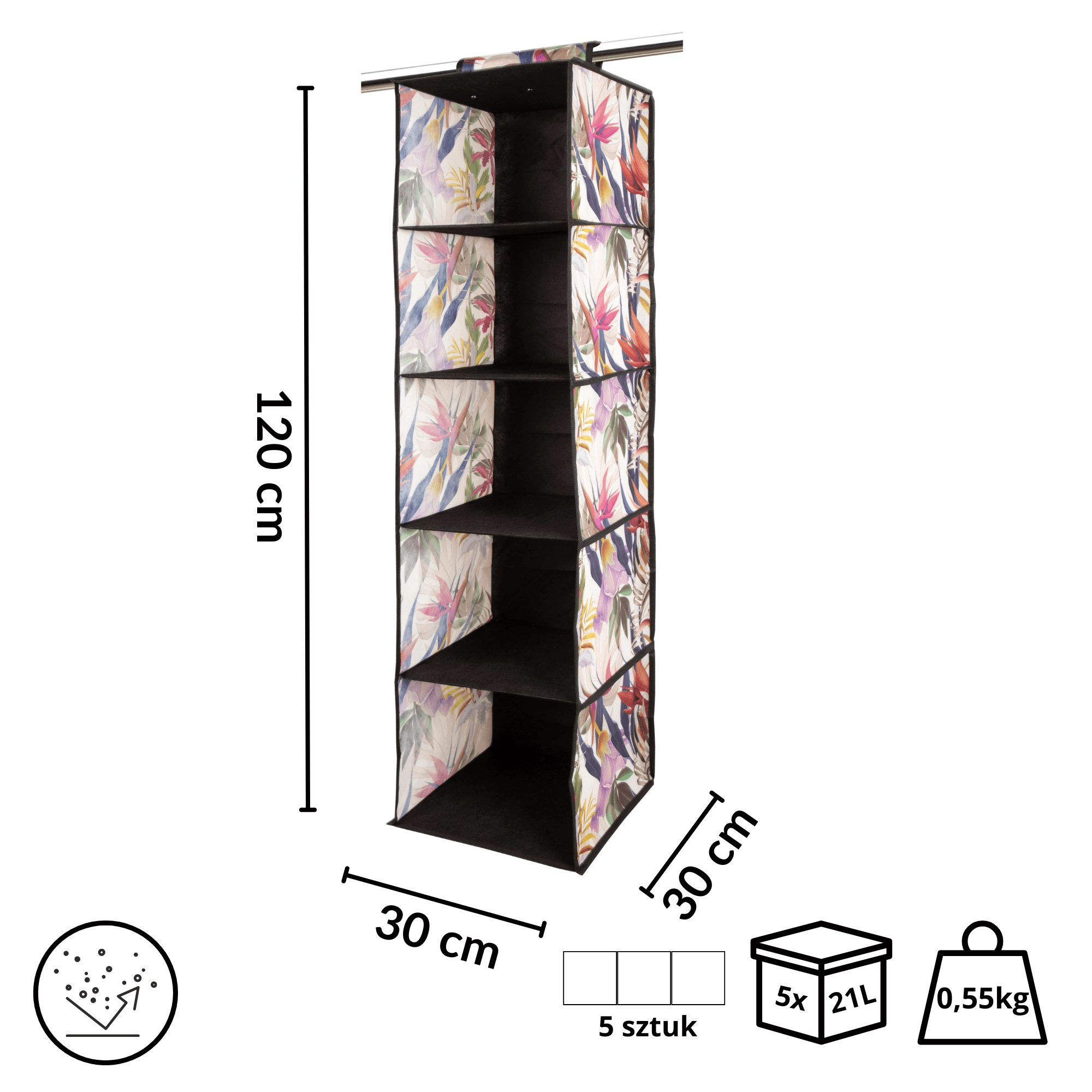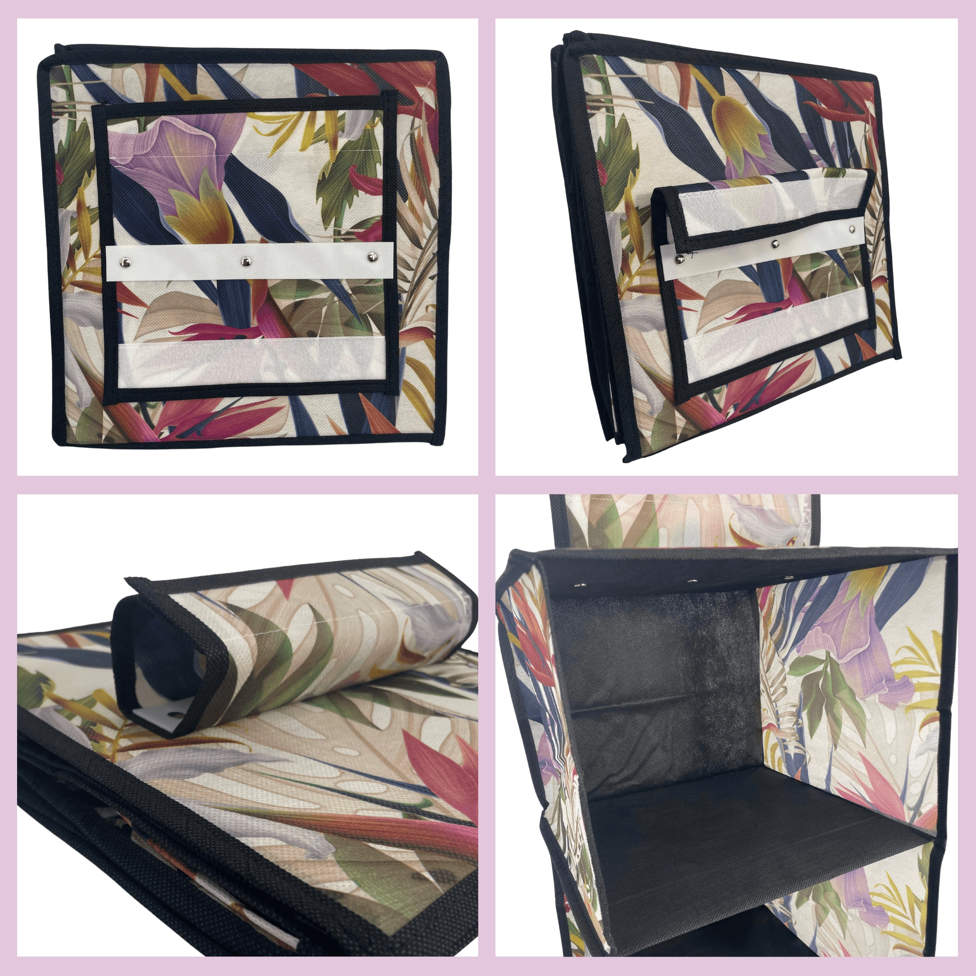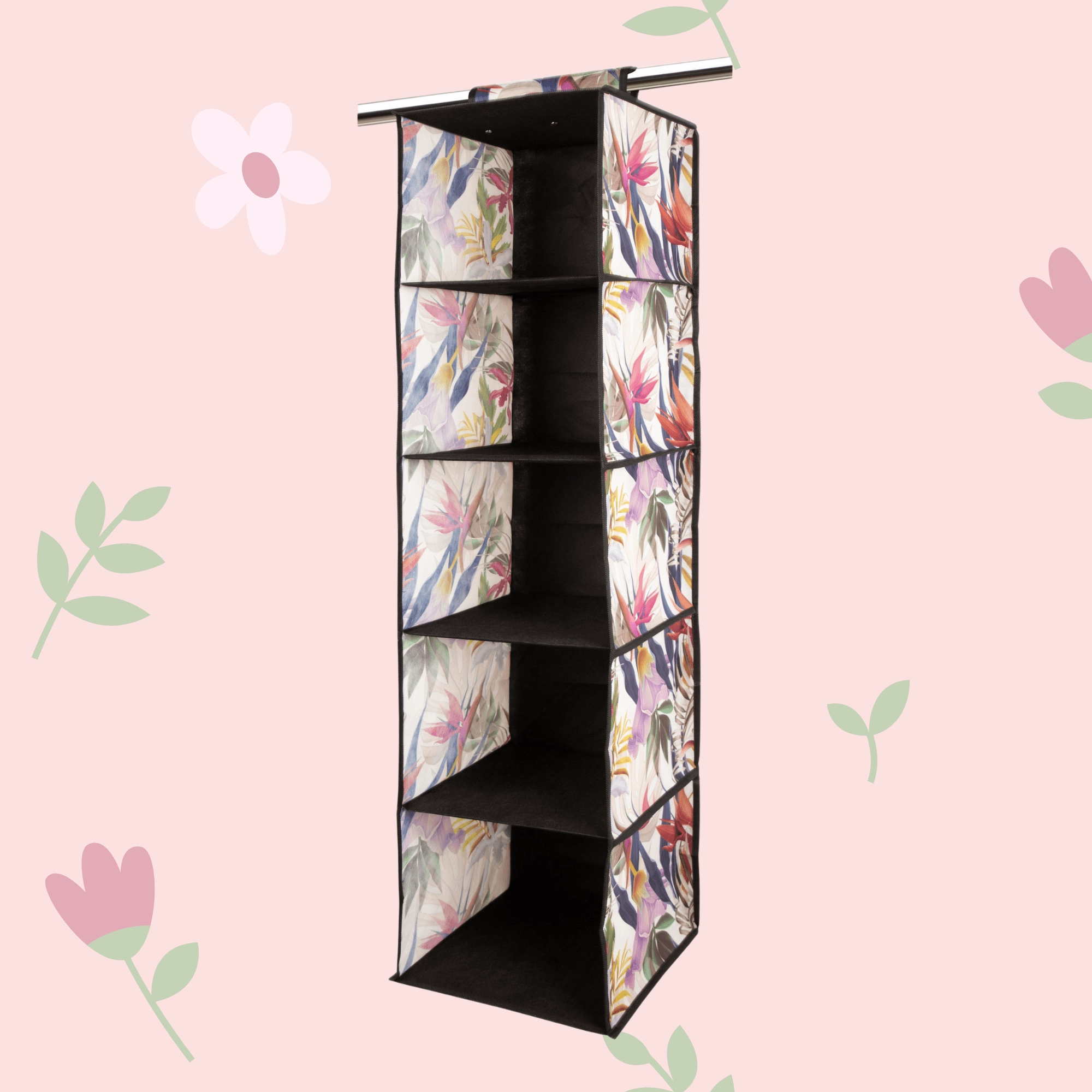 The side floral print adds style to your wardrobe, while the black shelf interiors look clean and elegant. The sturdy, lightweight PET non-woven material is low-maintenance and resistant to everyday wear.