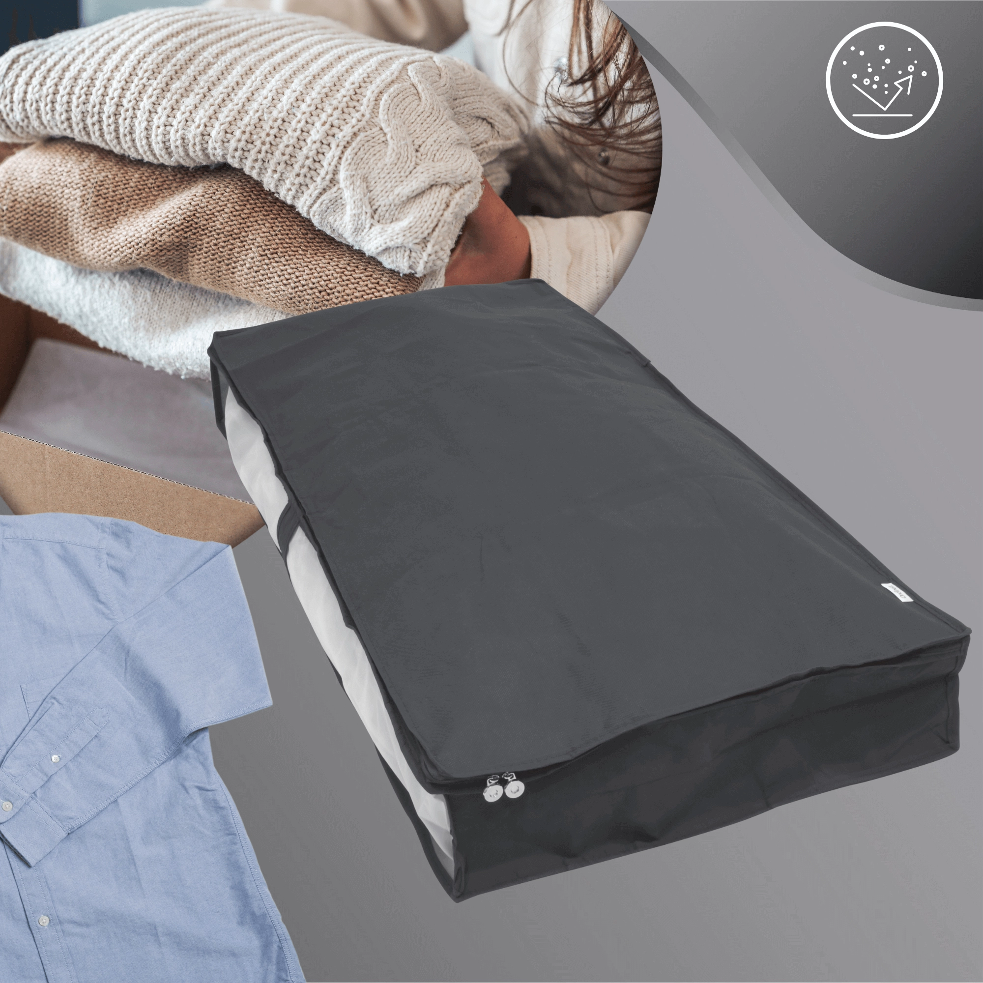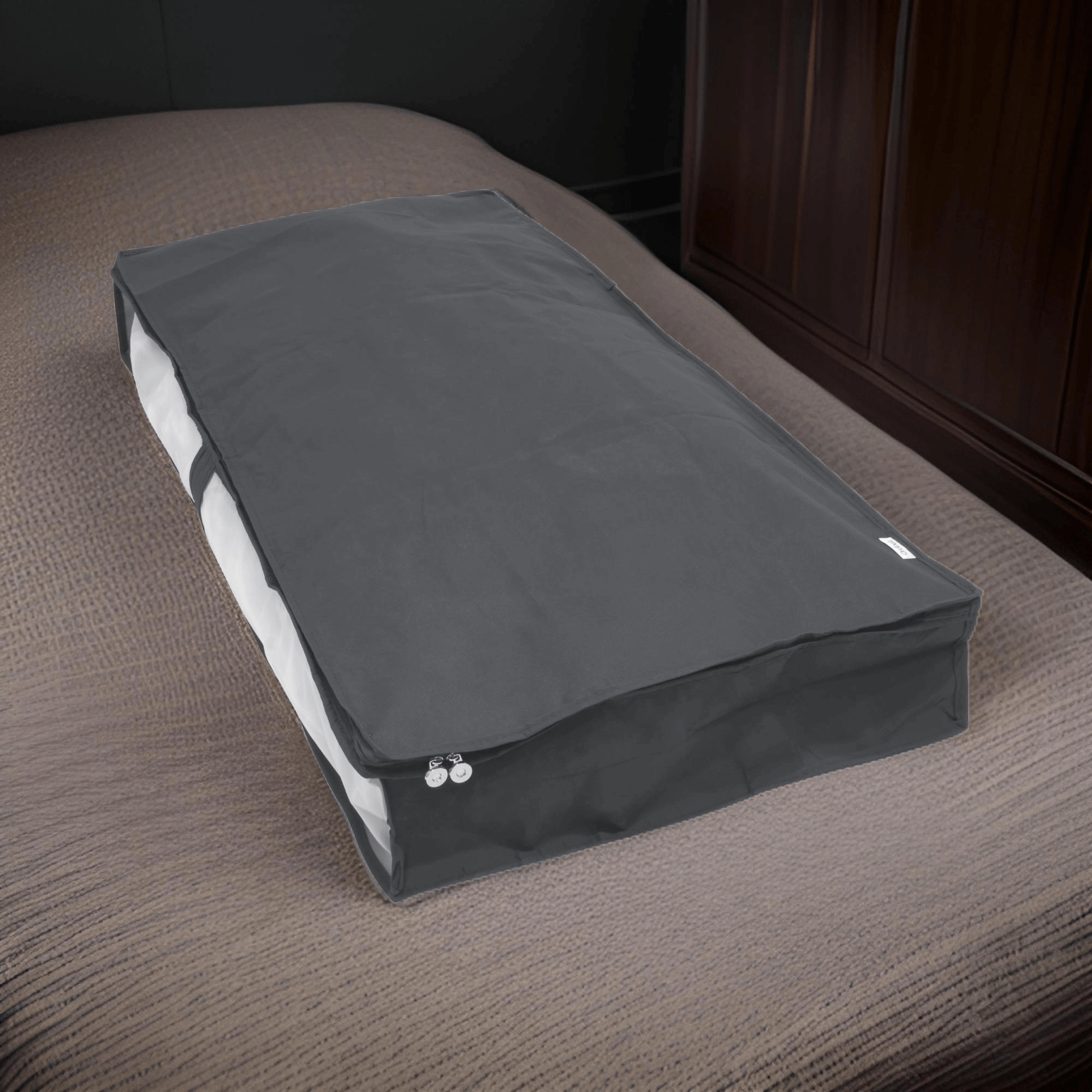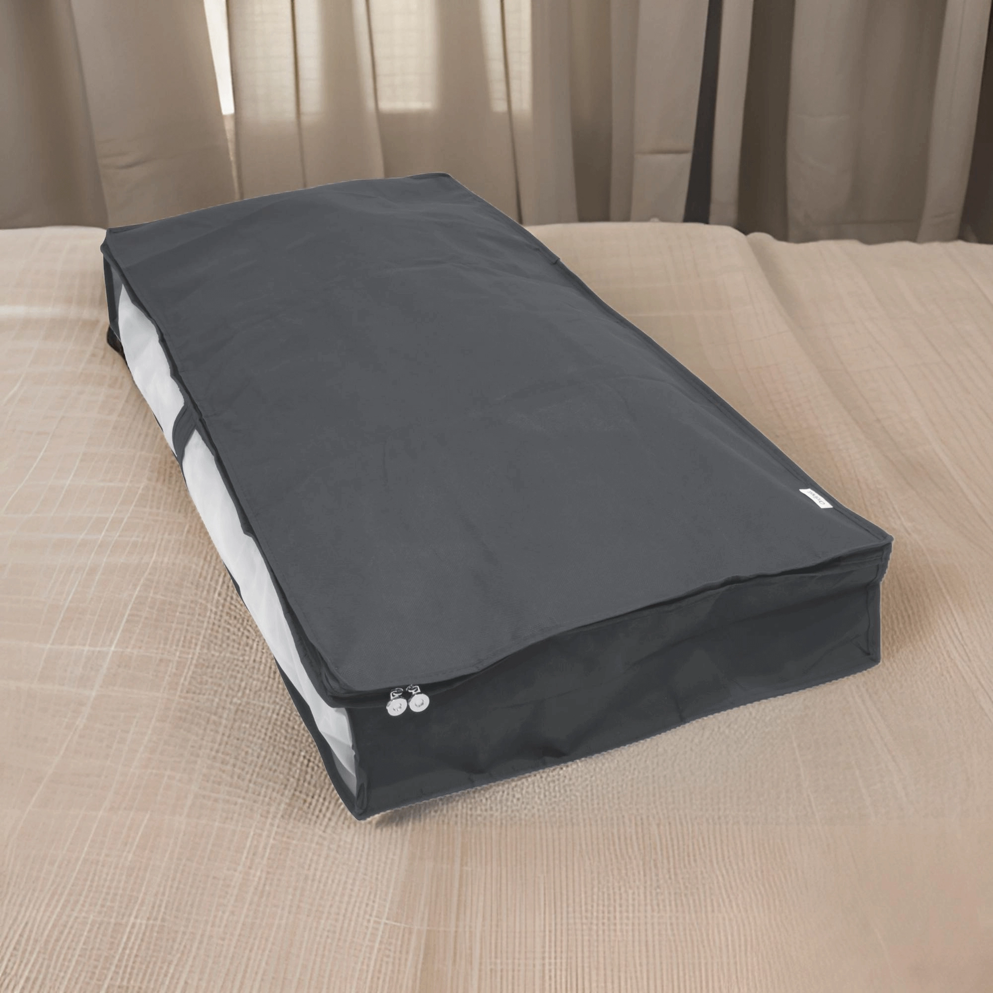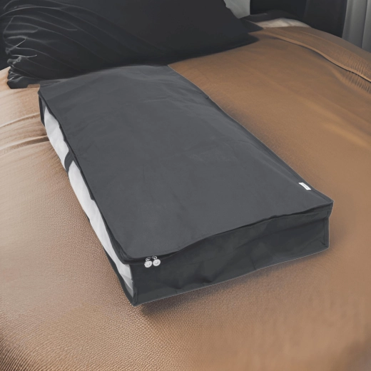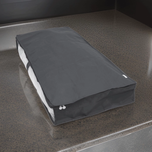 Keep your bedroom and wardrobe tidy with this practical under-bed organizer in elegant gray. It protects clothes from dust, features a clear panel for a quick overview, and a zipper around the entire edge for easy access. Ideal for seasonal clothing, bedding, and textiles.