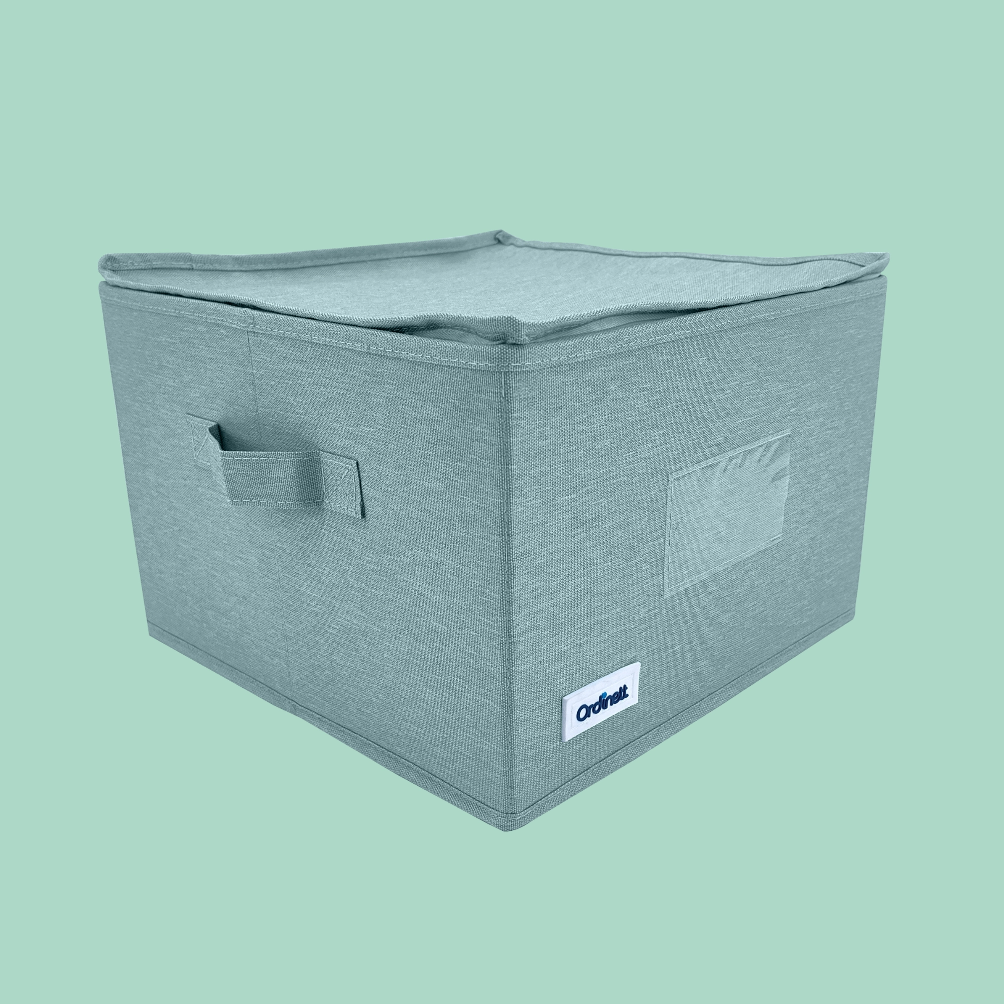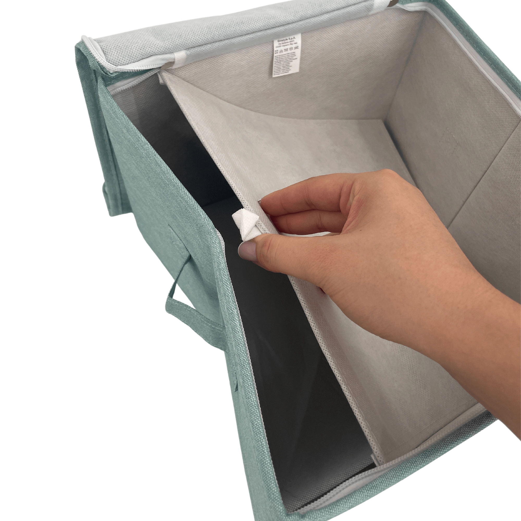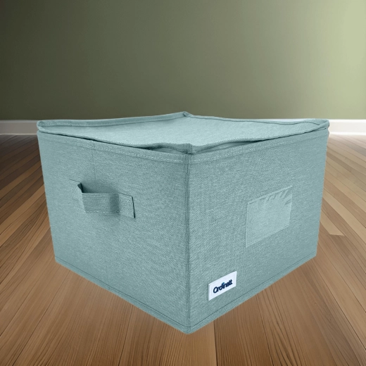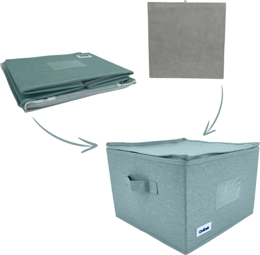 Keep your home tidy in style. This textile storage box measuring 30 × 30 × 21 cm in an elegant mint color features a sturdy lid, side handles for easy carrying, and a foldable design to save space. Ideal for clothes, laundry, toys, books, and small items — your belongings stay neatly organized and protected from dust.