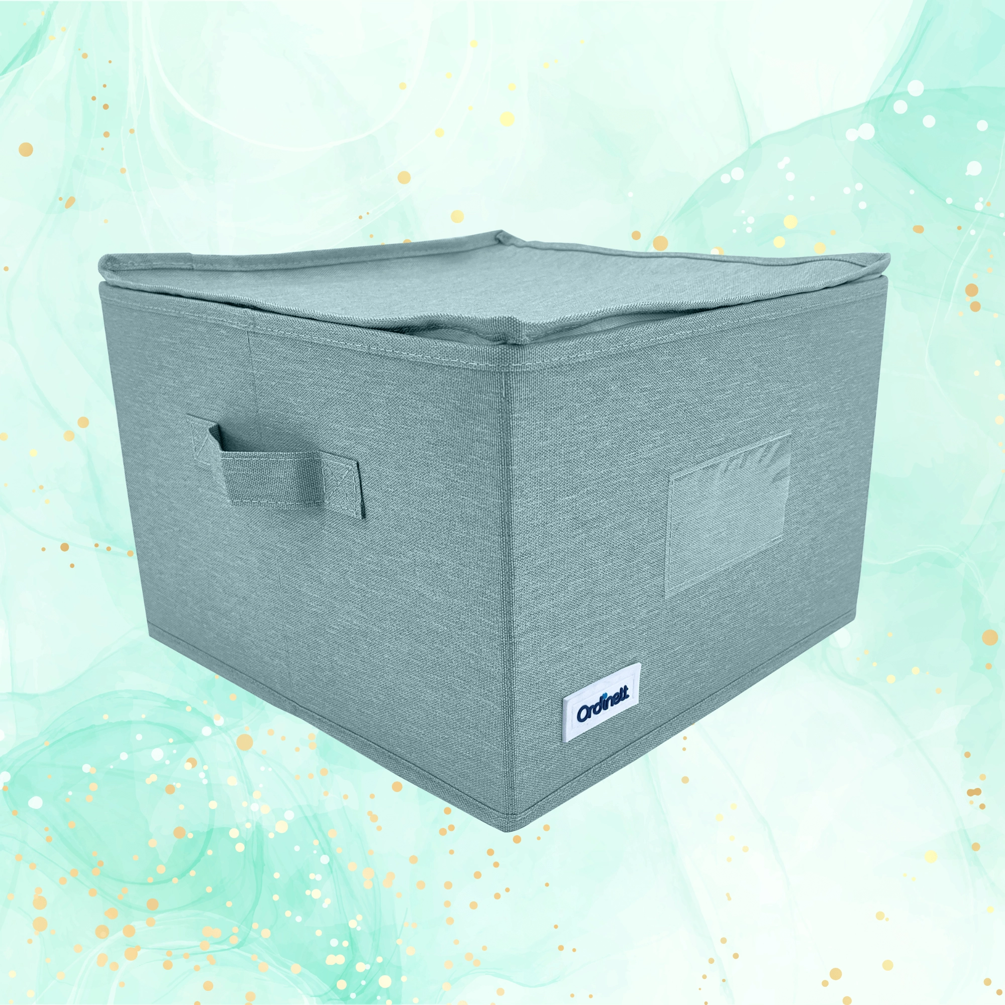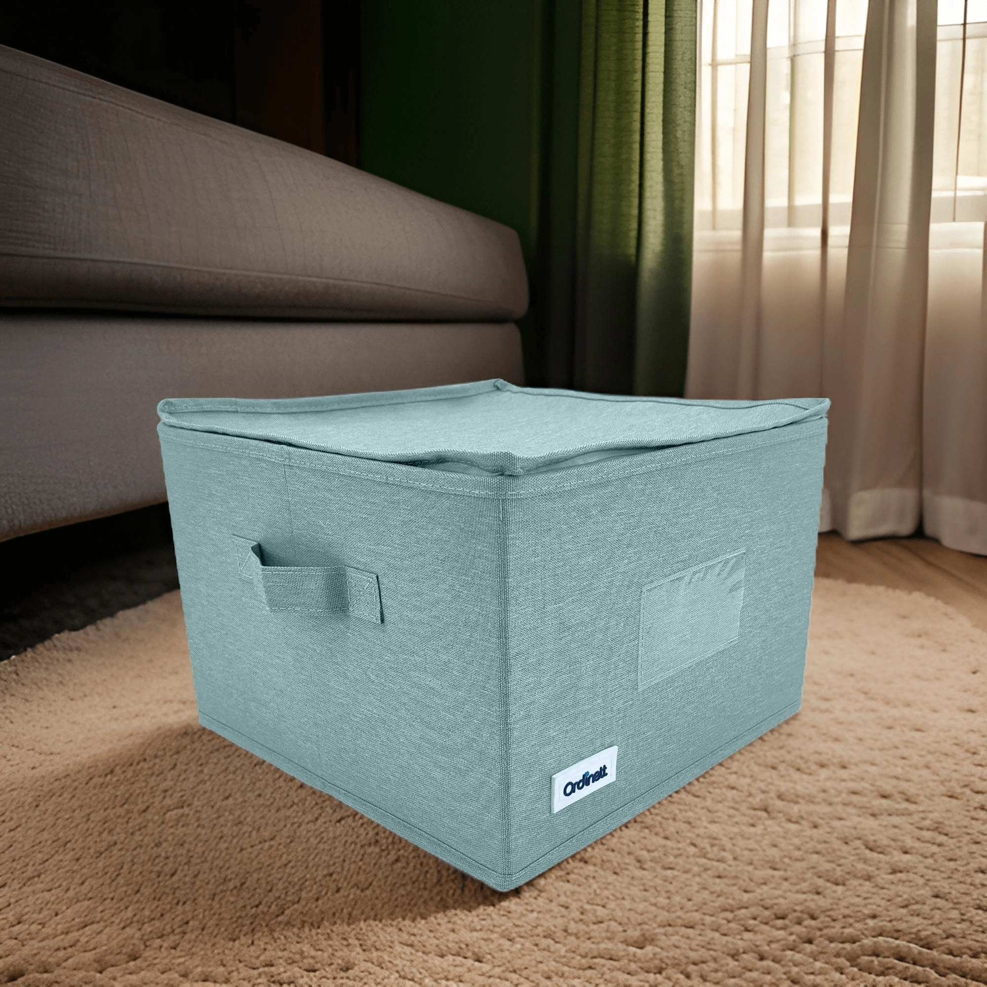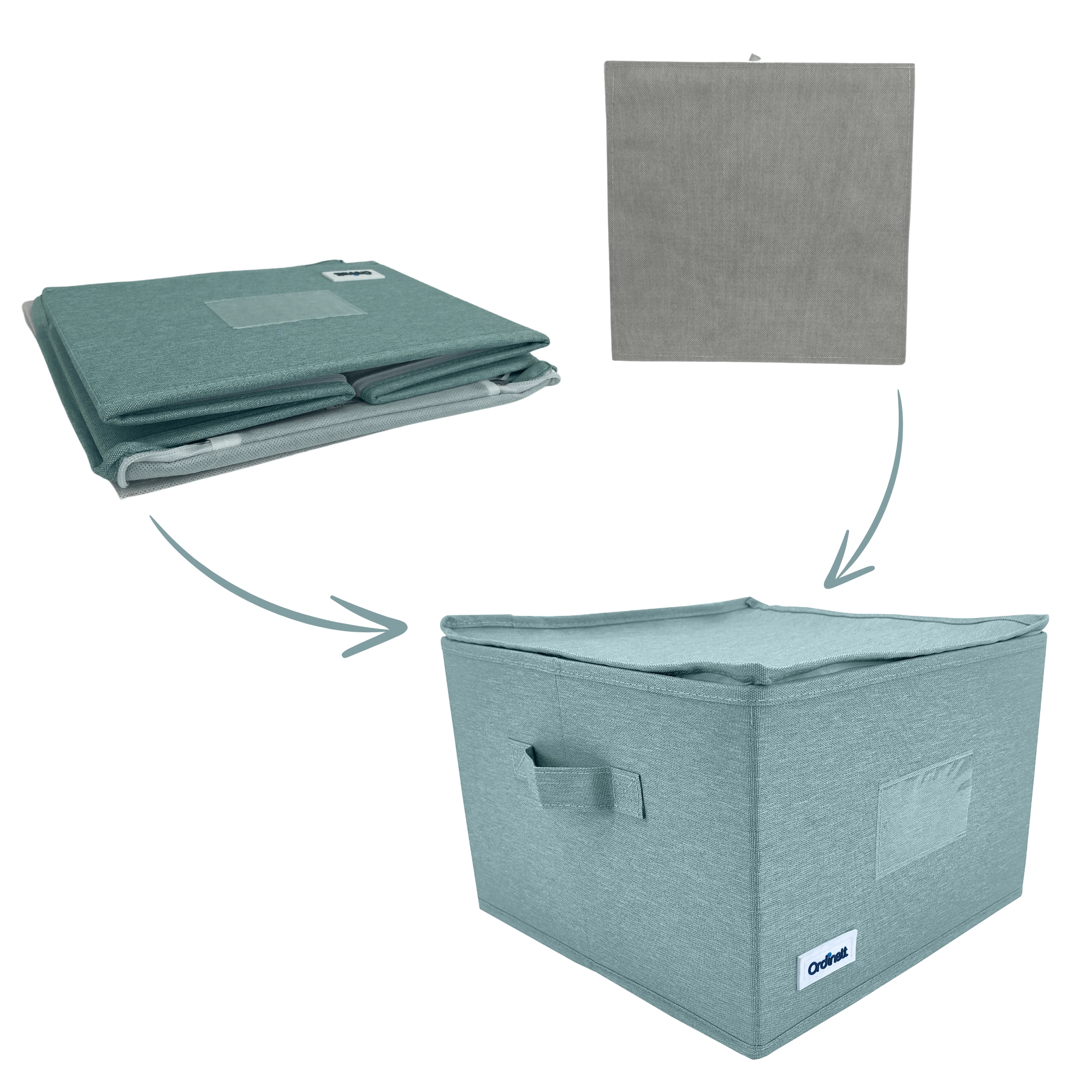 Keep your home tidy in style. This textile storage box measuring 30 × 30 × 21 cm in an elegant mint color features a sturdy lid, side handles for easy carrying, and a foldable design to save space. Ideal for clothes, laundry, toys, books, and small items — your belongings stay neatly organized and protected from dust.