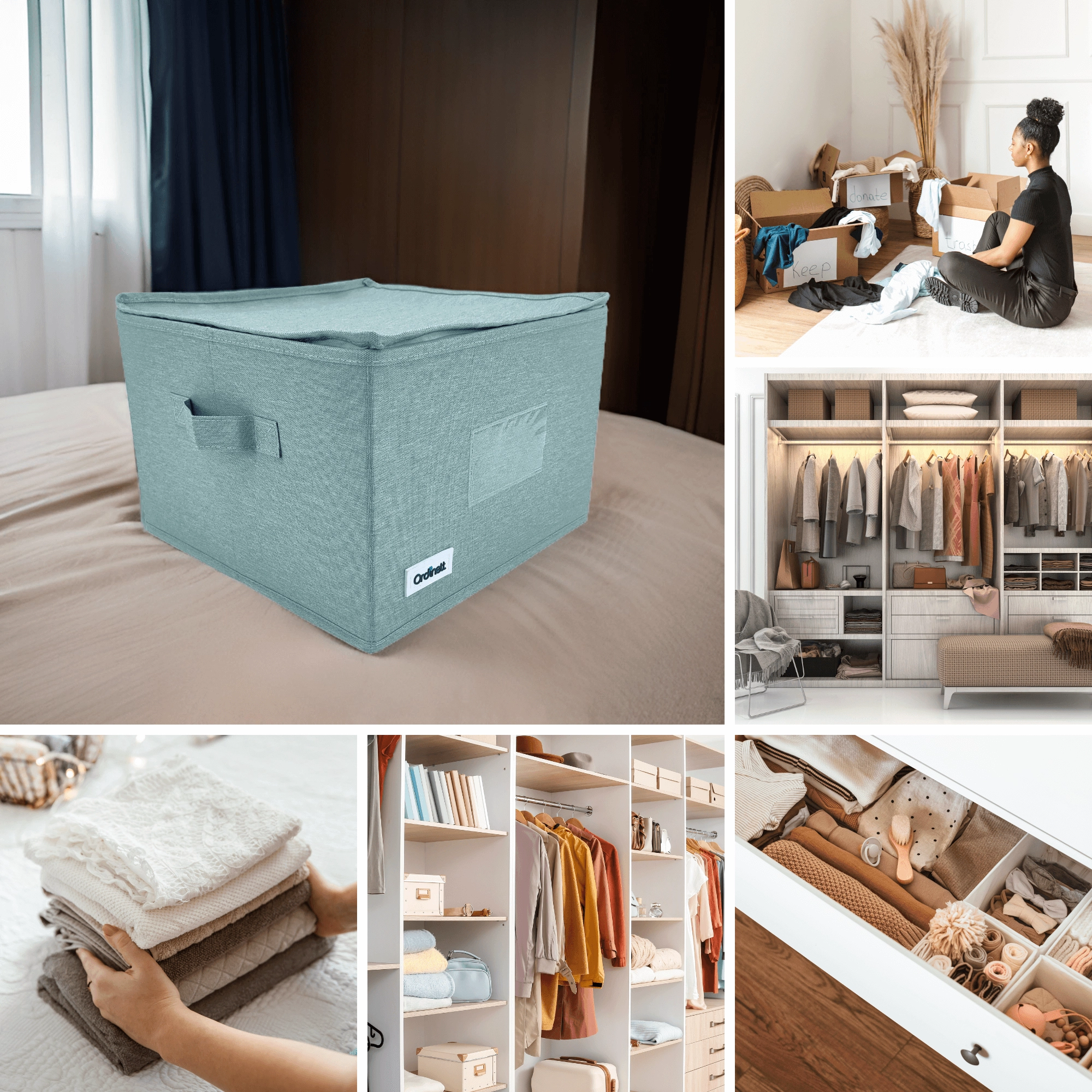 The closable lid keeps stored items clean and neatly concealed, ideal for wardrobes and shelves.