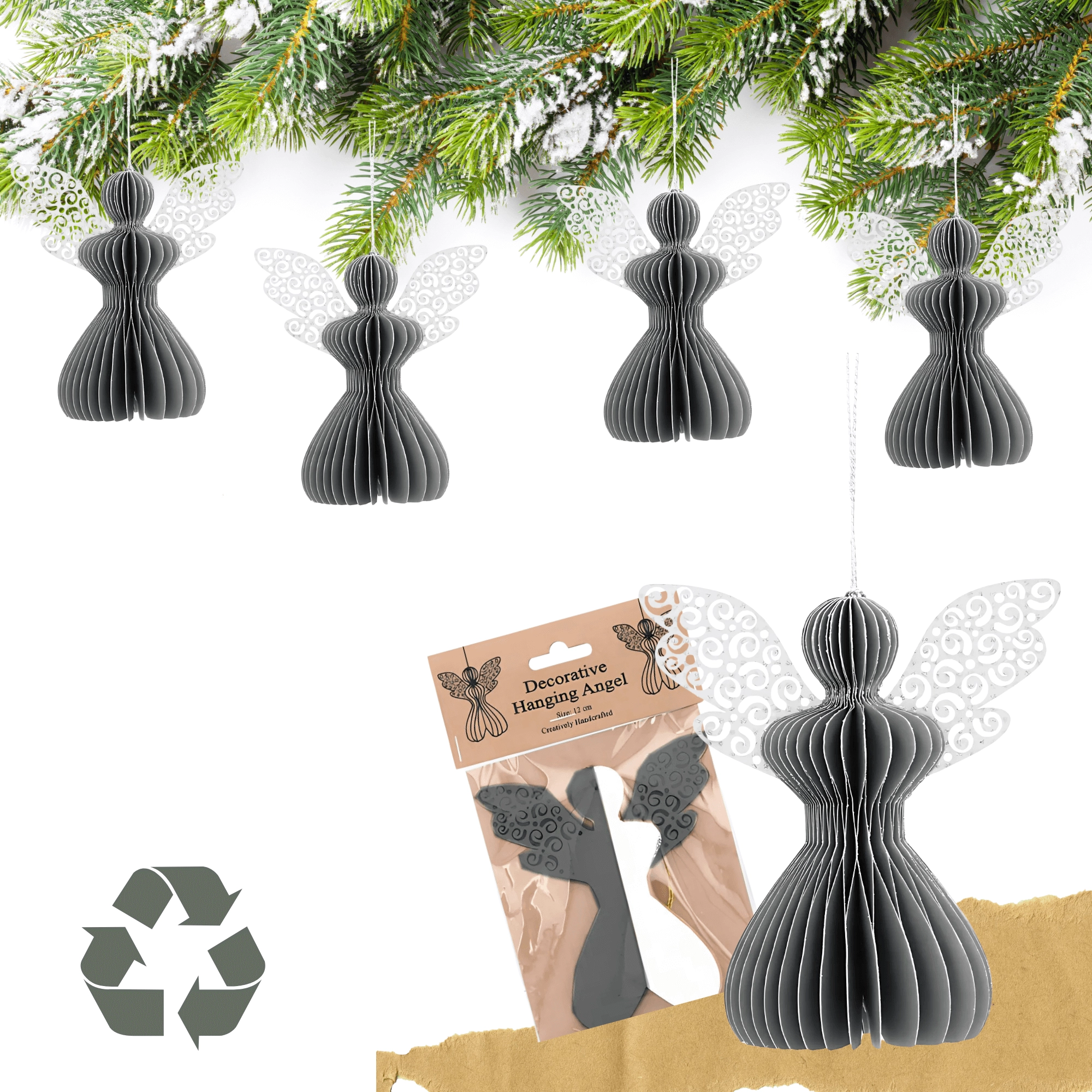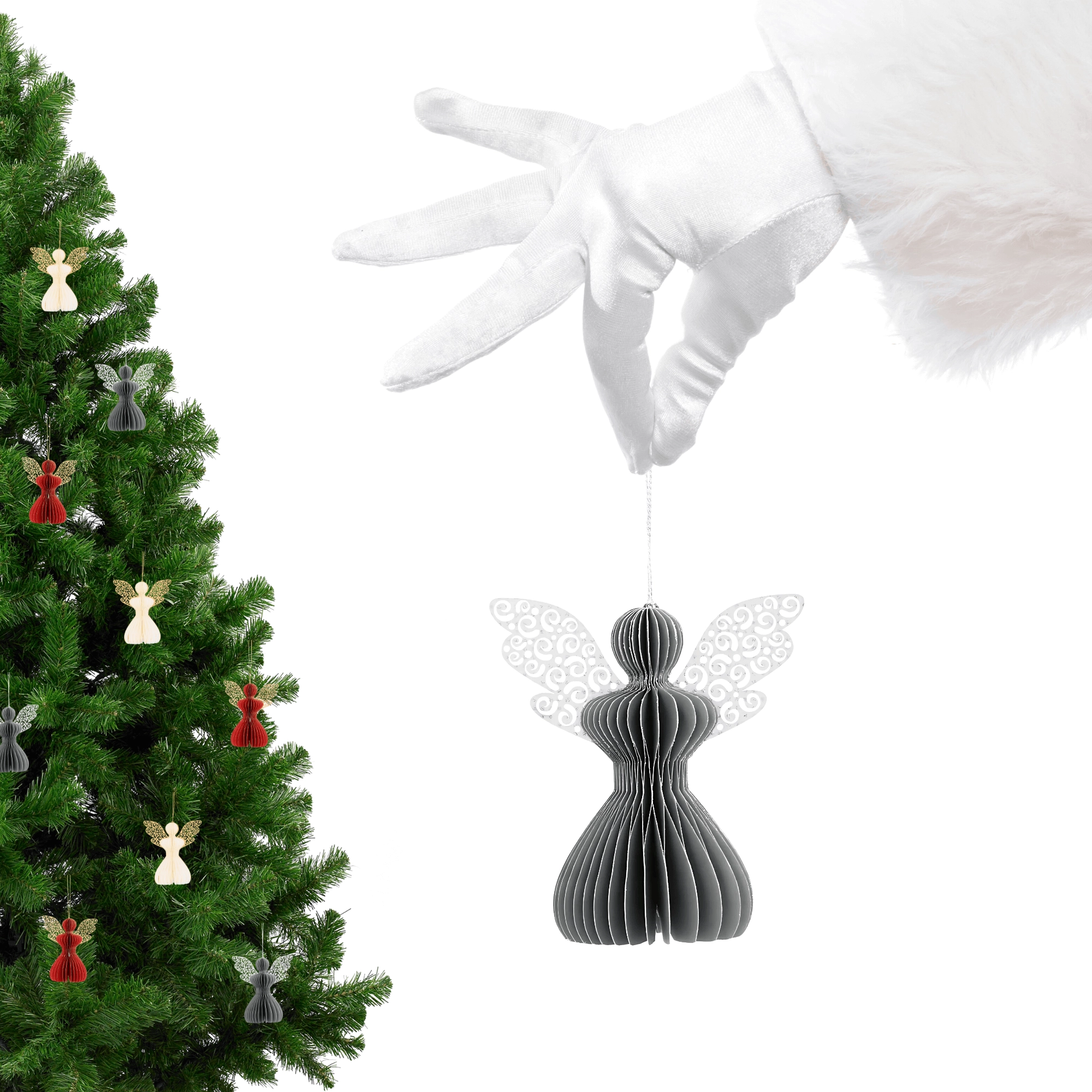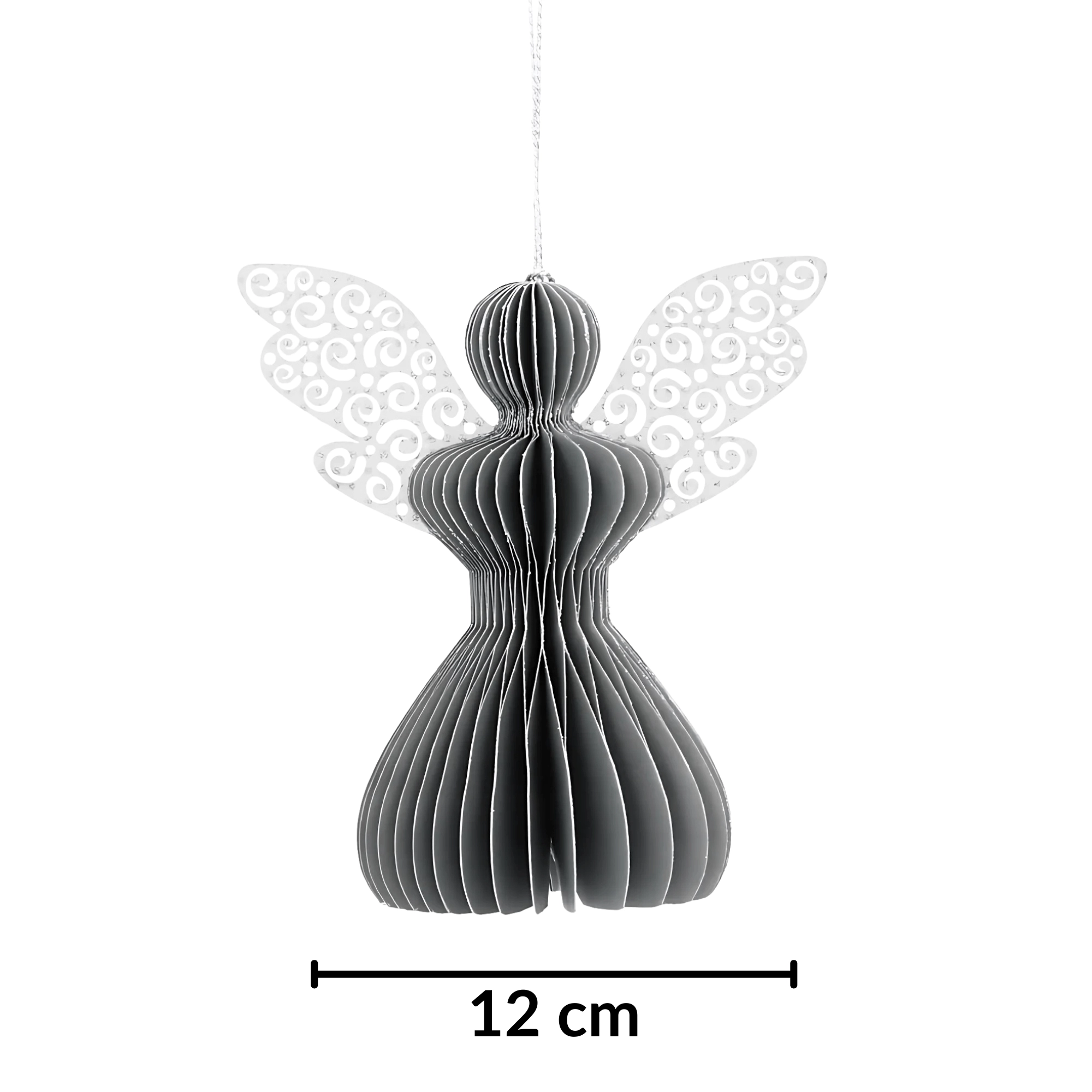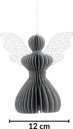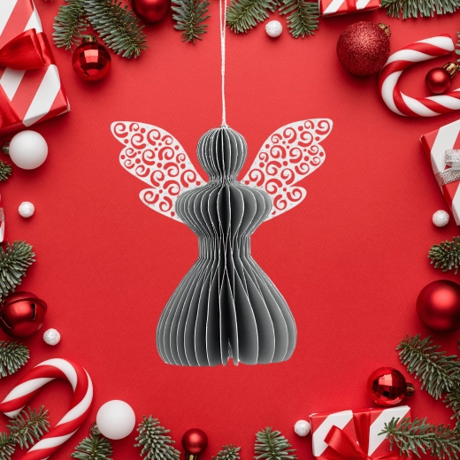 A stylish gray angel with an accordion 3D effect brings subtle elegance and a cozy Christmas atmosphere to your interior. The neutral gray shade pairs easily with gold, white, and natural accents, complementing both modern and classic décor.