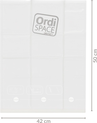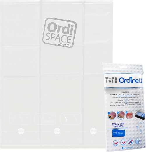 Stay organized at home and on the go. The roll-up vacuum bag M 42 × 50 cm made of sturdy polyethylene lets you quickly and efficiently compress clothing without a vacuum. Just insert garments, seal, and roll—the air is expelled and you gain more space.