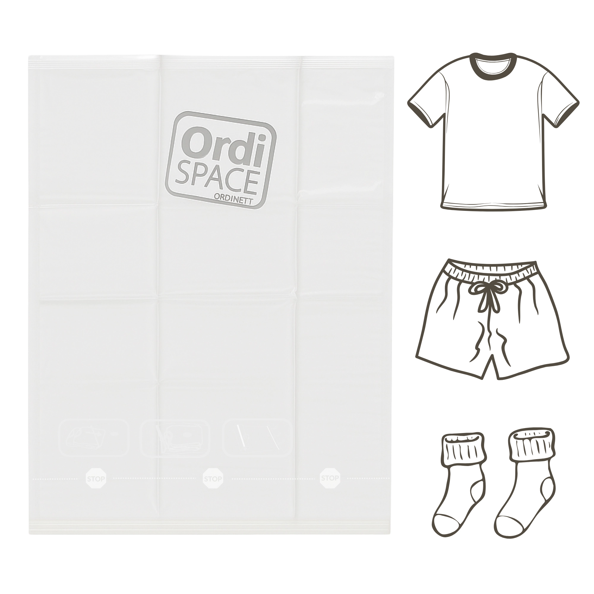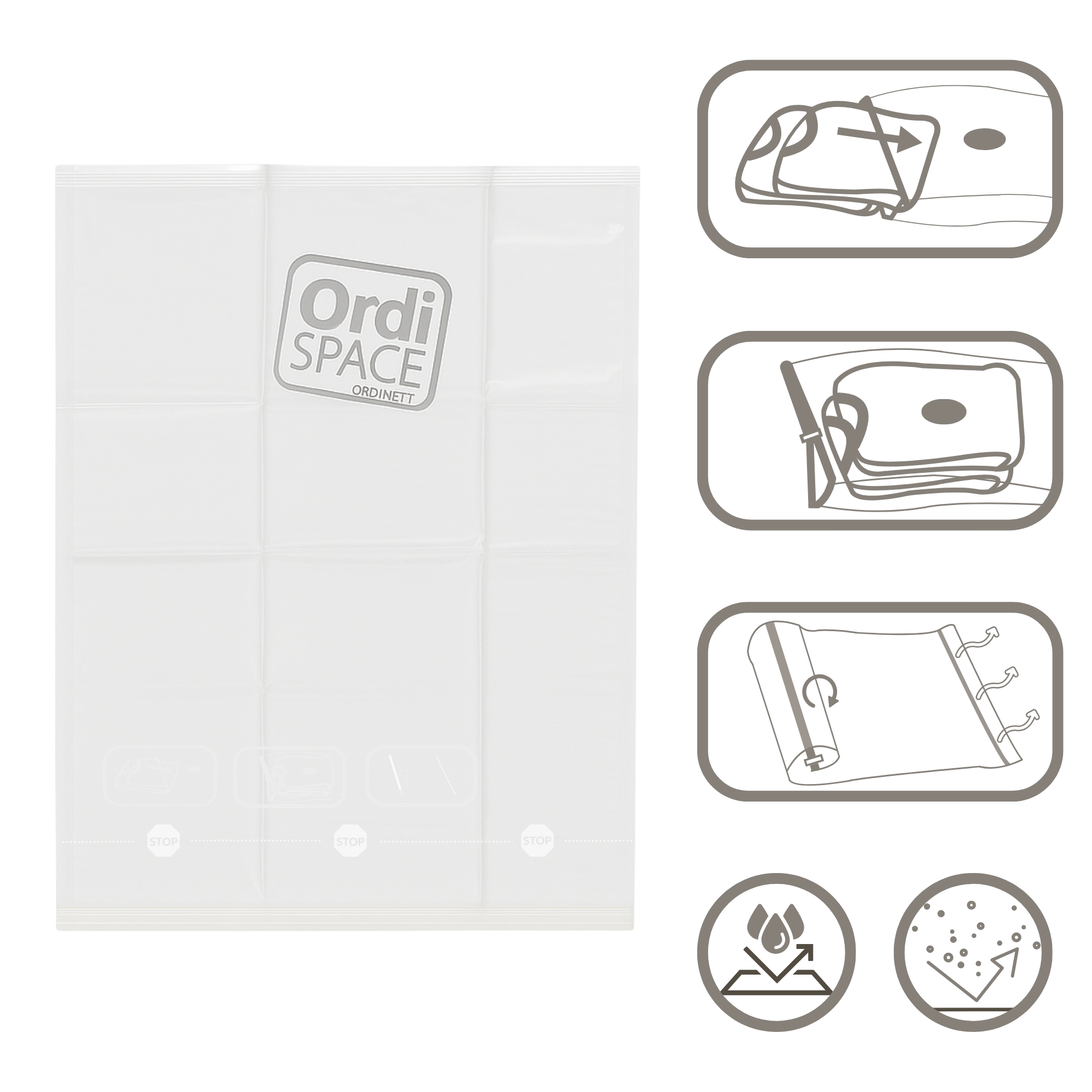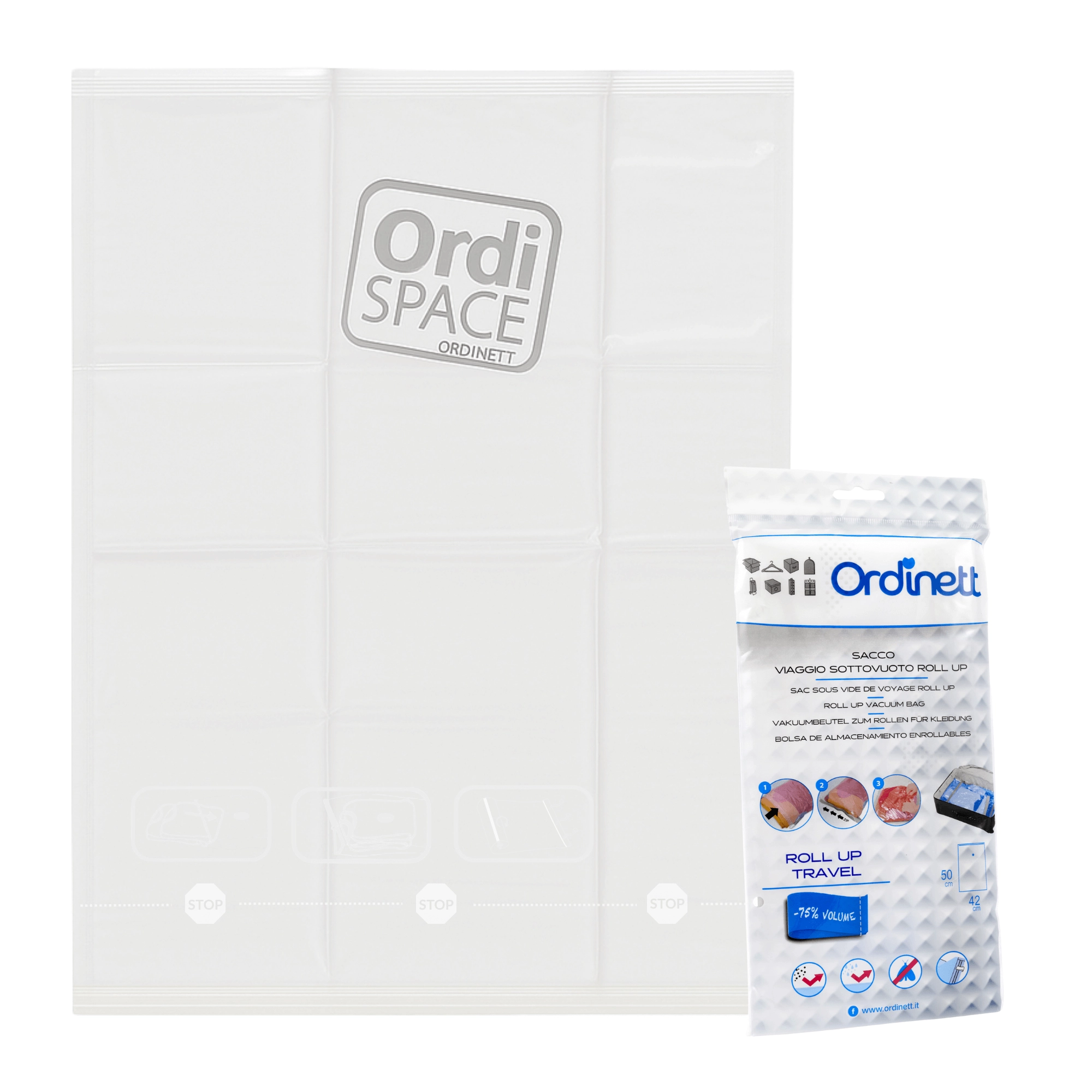 • Space savings up to 75%: efficient compression for travel and home storage