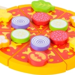 The pizza slices are connected with Velcro, allowing children to easily separate and reattach them.