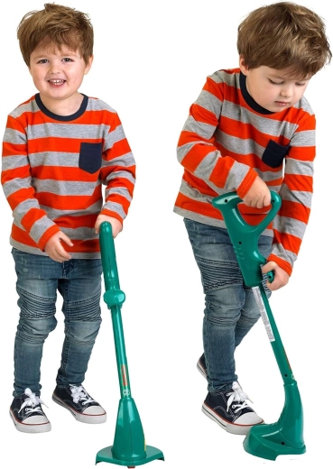 A faithful replica of a real string trimmer in the typical BOSCH design motivates kids to play at being little gardeners.