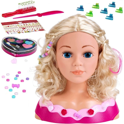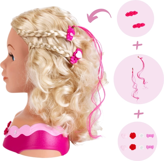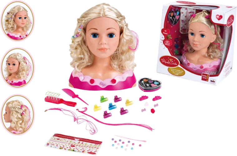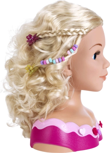 Discover a creative world of hairdressing and makeup play with the PRINCESS CORALIE styling head by Klein. Long blonde hair, a stable bust, and a rich set of accessories let kids create endless hairstyles and try out kid-safe makeup. A great toy for developing fine motor skills, creativity, and aesthetic sense.