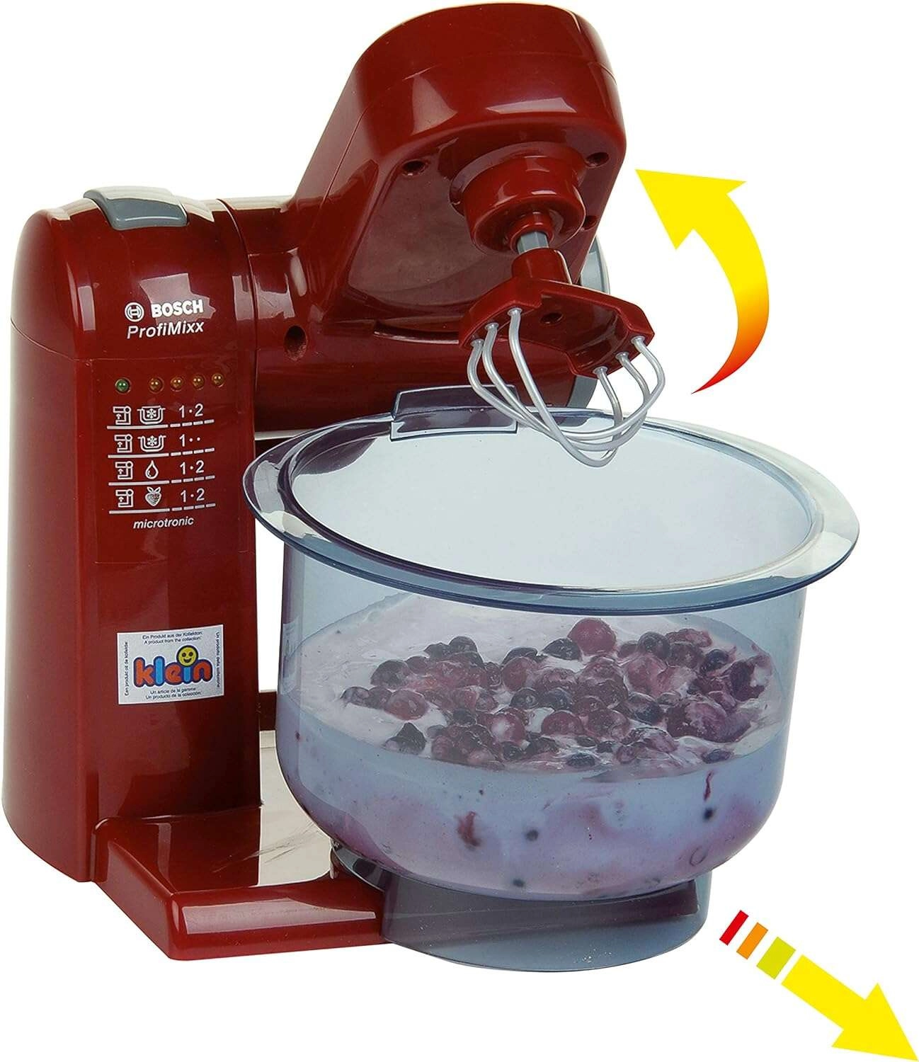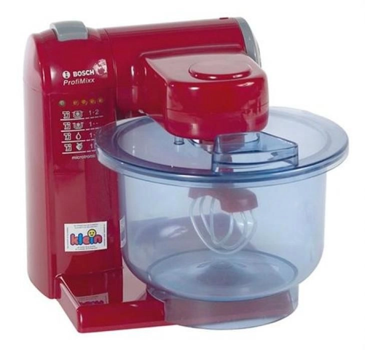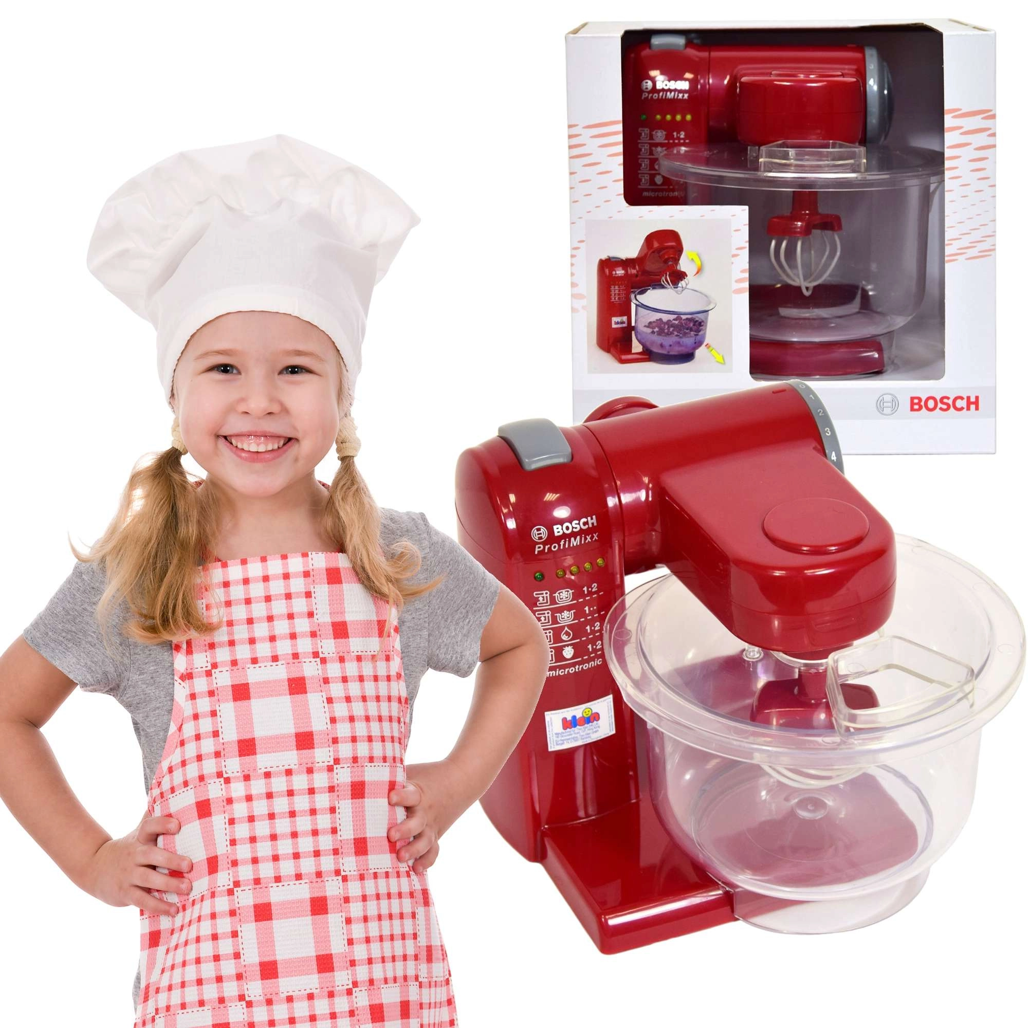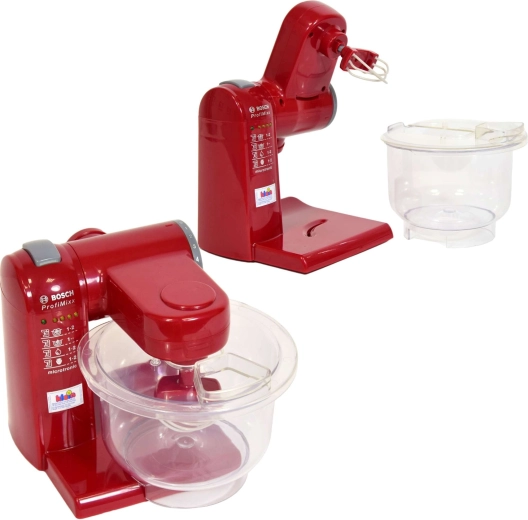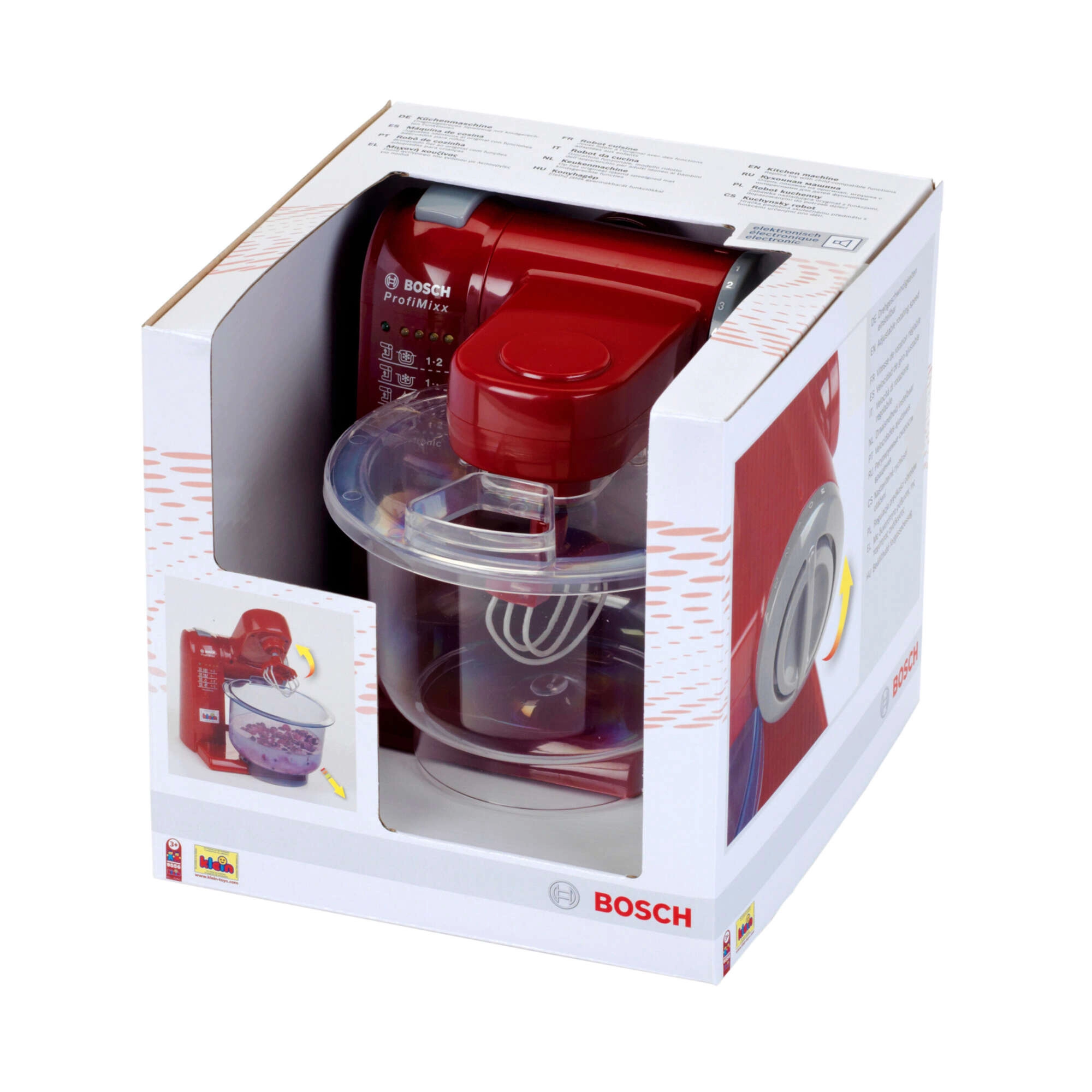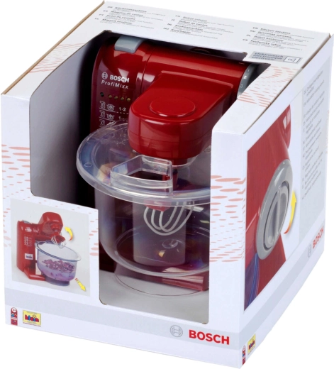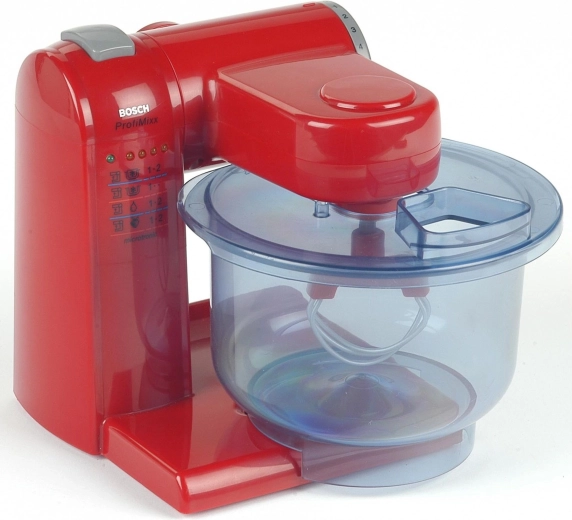 A realistic kids' kitchen mixer licensed by BOSCH will delight little chefs. It offers a removable transparent bowl, a tilting arm, 2 speed levels, and light and sound effects. The compact size is ideal for children’s hands, and the safe plastic design supports creative pretend baking and cooking.