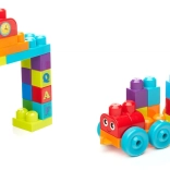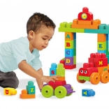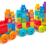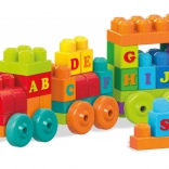 Each brick carries a letter, so kids can build the alphabet and their first words right on the train.