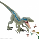 Become part of the JURASSIC WORLD with this giant Blue figure! This impressive raptor heroine stands approximately 45 cm tall and 106 cm long, featuring realistic skin texture, the iconic blue stripe, and many poseable joints for action play. With an opening jaw and cleverly hidden belly hatch, Blue can “swallow” up to 20 mini figures of dinosaurs (sold separately). Realistic details, a wide range of motion, and thrilling play possibilities will delight dinosaur fans of all ages.