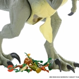 An opening mouth, articulated front and hind limbs, and a poseable tail enable more realistic posing and reenactment of scenes from JURASSIC WORLD.