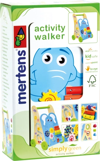 Support your toddler’s first steps and all-round development with this stable wooden activity walker. It offers a xylophone with a gentle sound, a bead maze, a shape sorter, and gears to explore cause and effect. Rubber wheels ensure quiet rolling and protect floors, while the robust construction from 100% FSC wood is safe and durable.